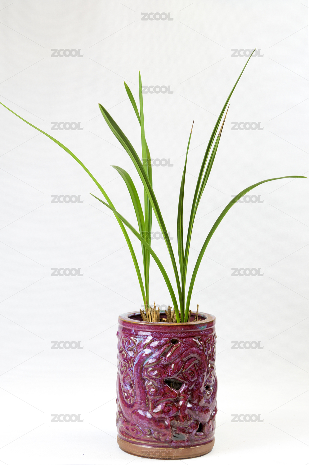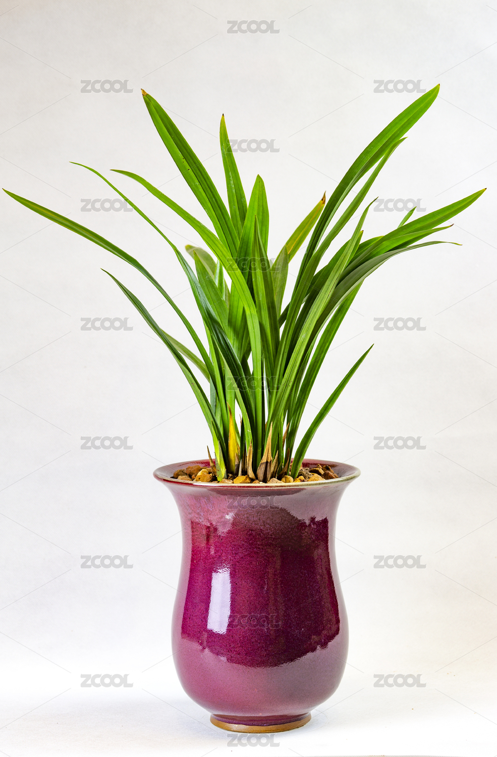 白色背景上种植在水泥花盆上的白玉虎皮兰植物