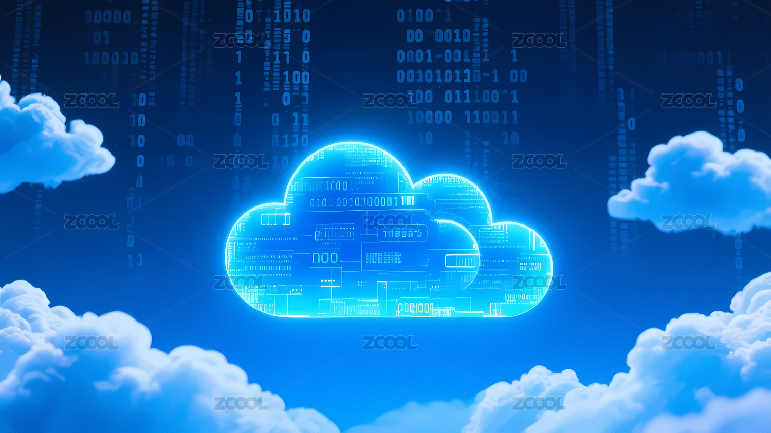 蓝色云朵与数据流的科技场景