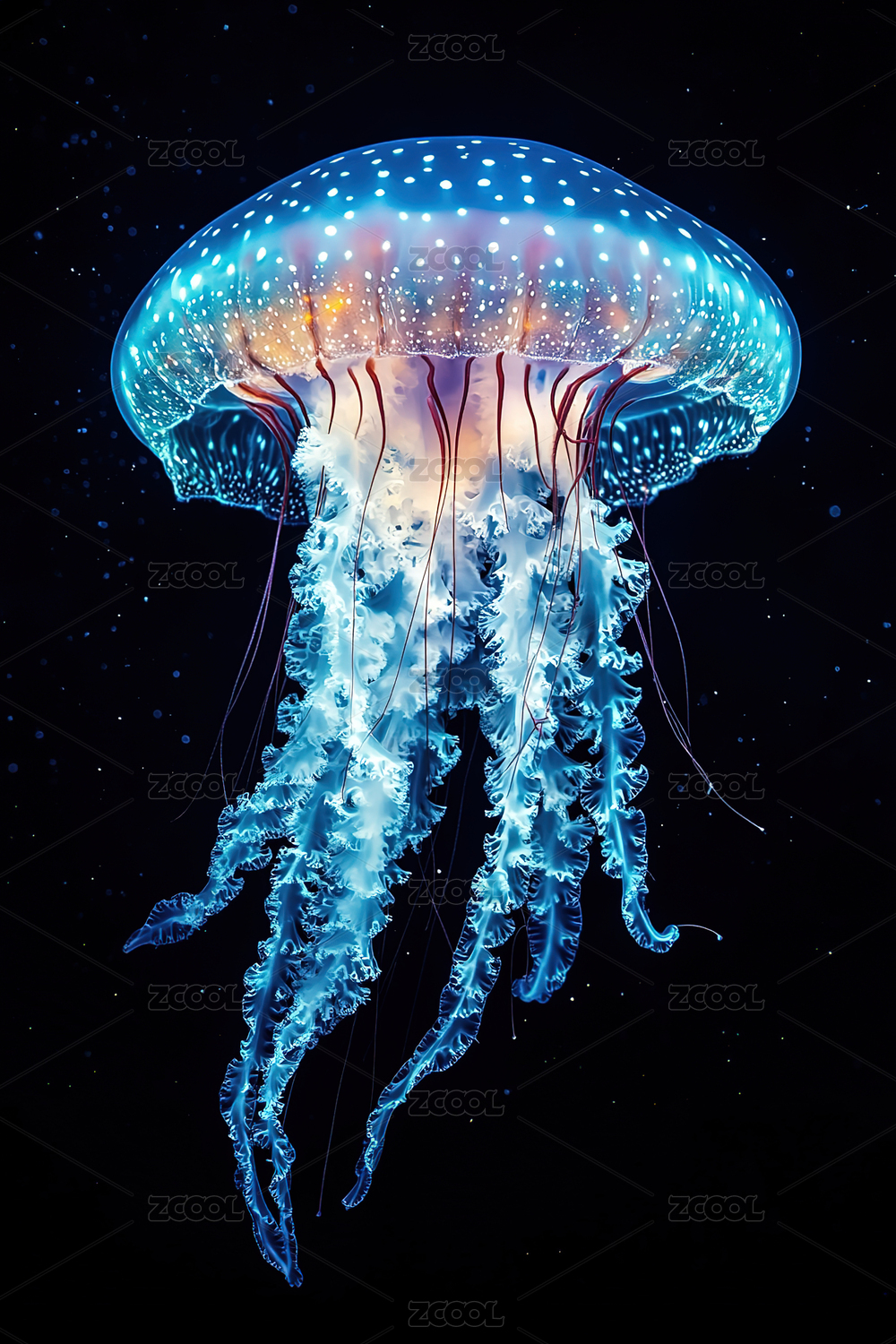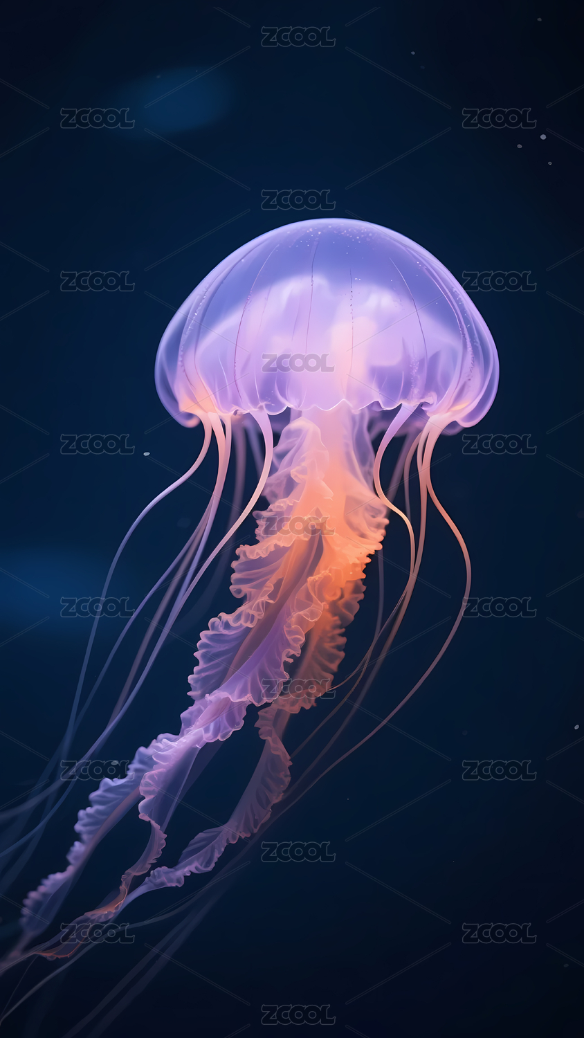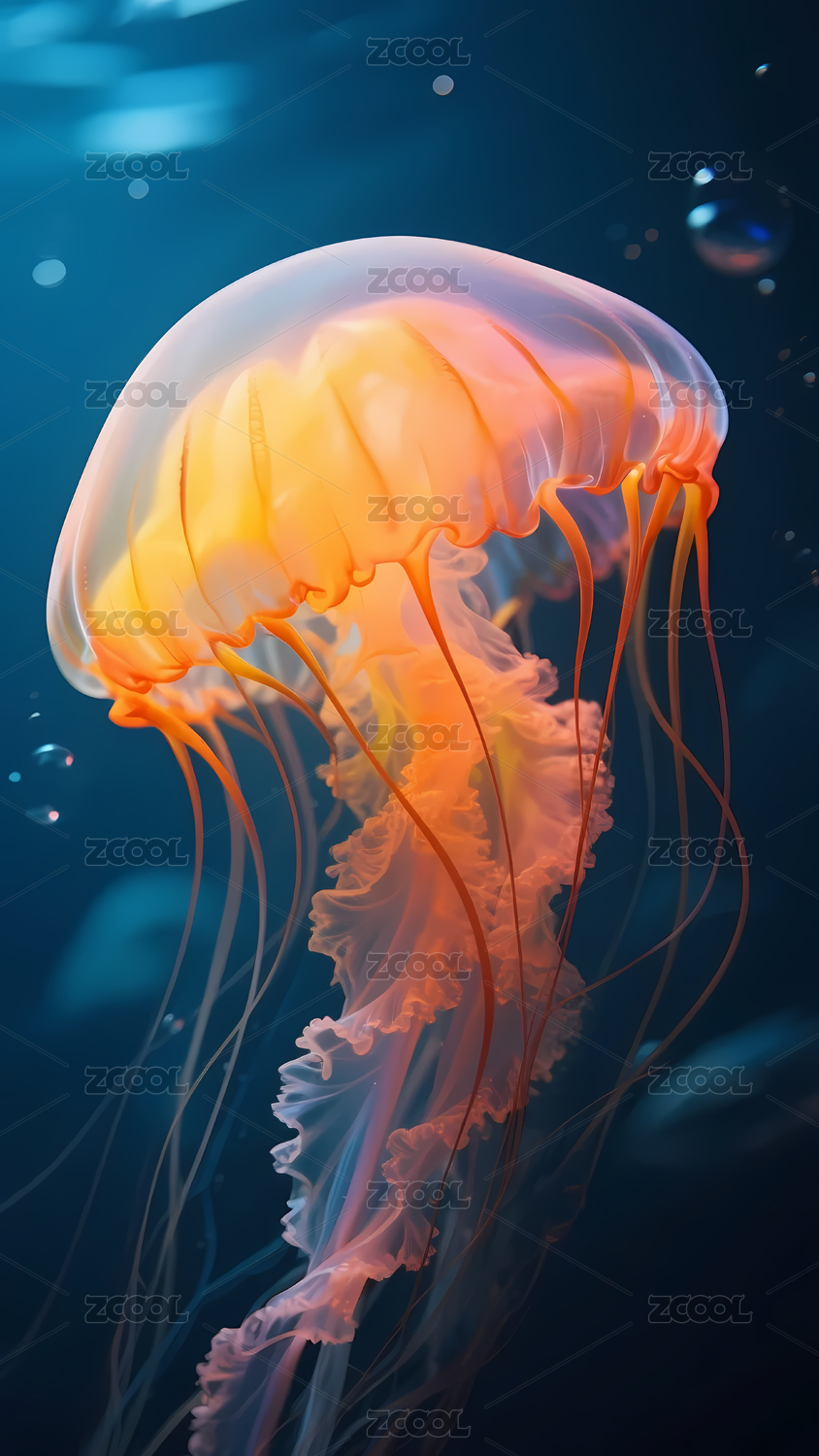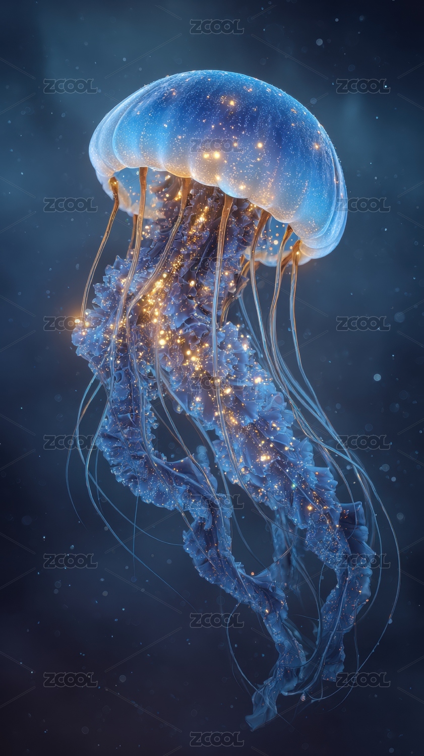 蓝色梦幻水母特写海洋生物海底世界生物背景