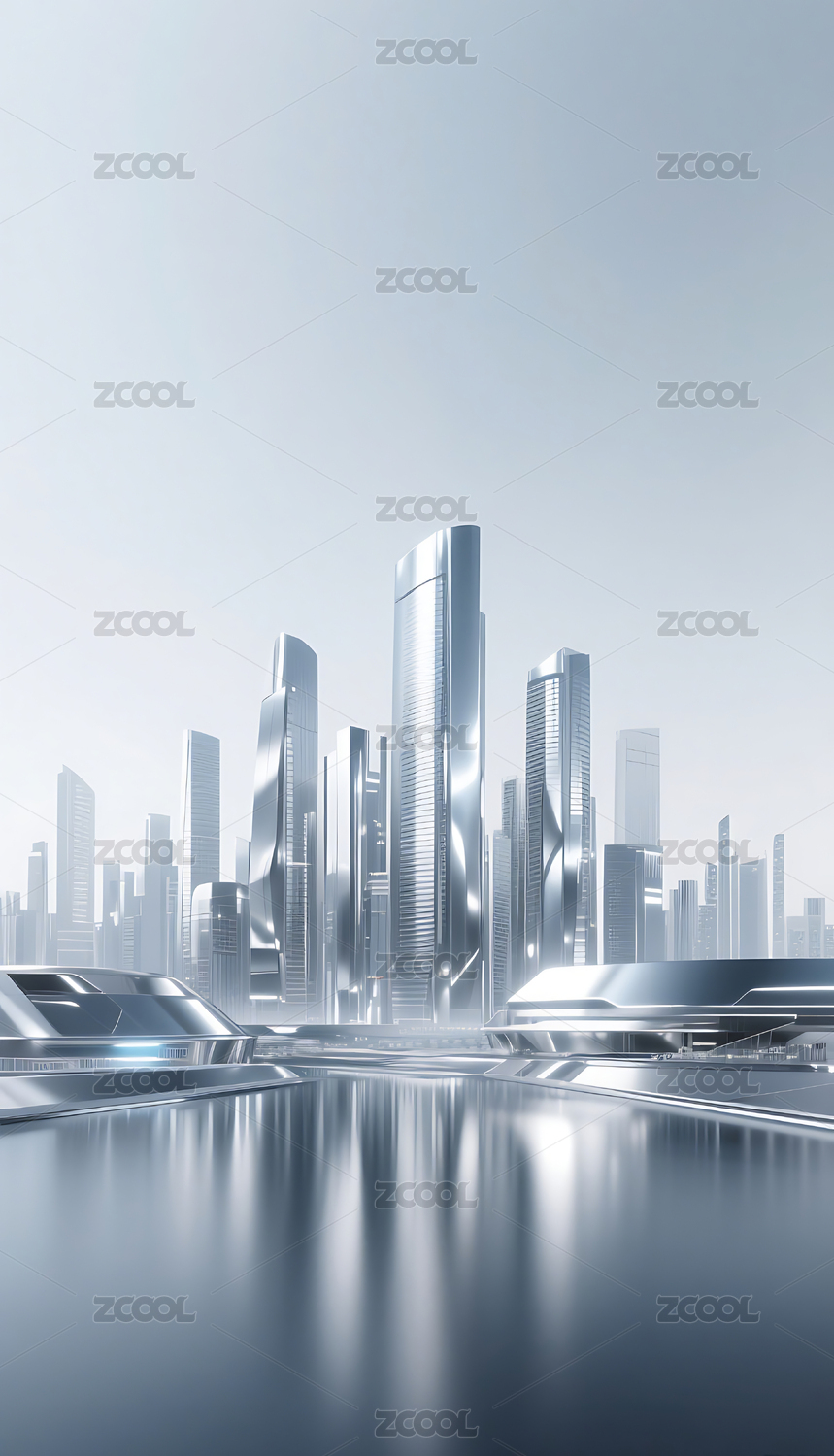 现代,极简,三维,场景,商务,建筑,白昼,蓝天,水,倒影