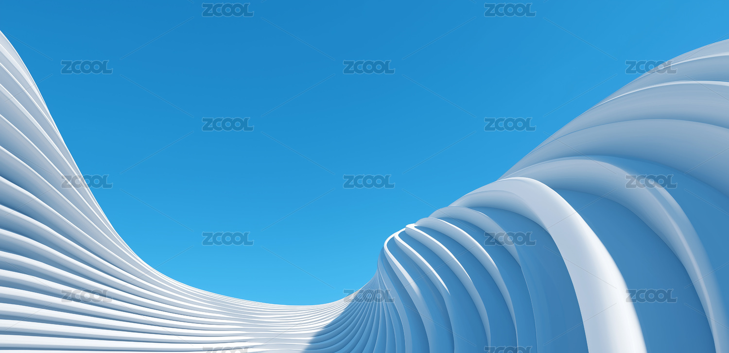 白色曲线结构与蓝天背景