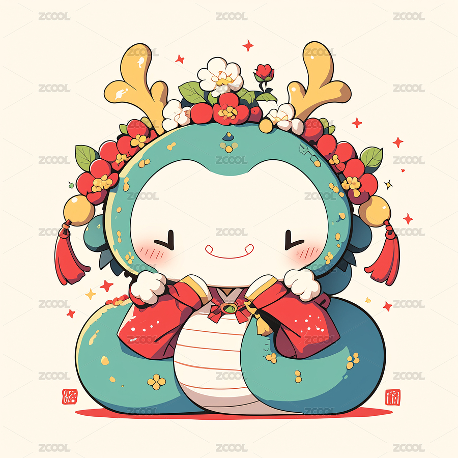 春节,动物,国风,过年,红色,吉祥物,节日,卡通,可爱,快乐