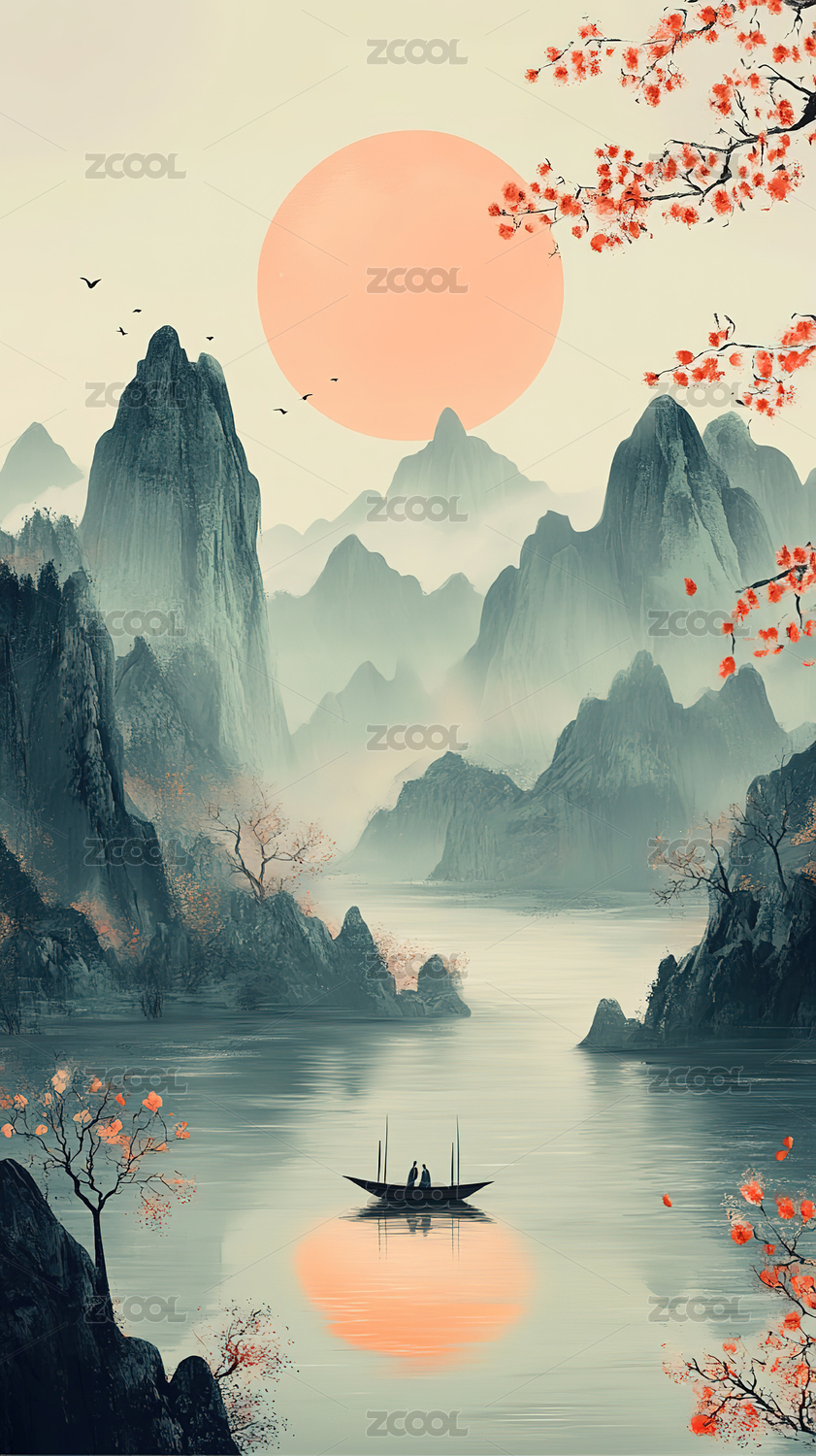 现代,极简,传统,自然,风景,宁静,插画,抽象,灵感,梦想