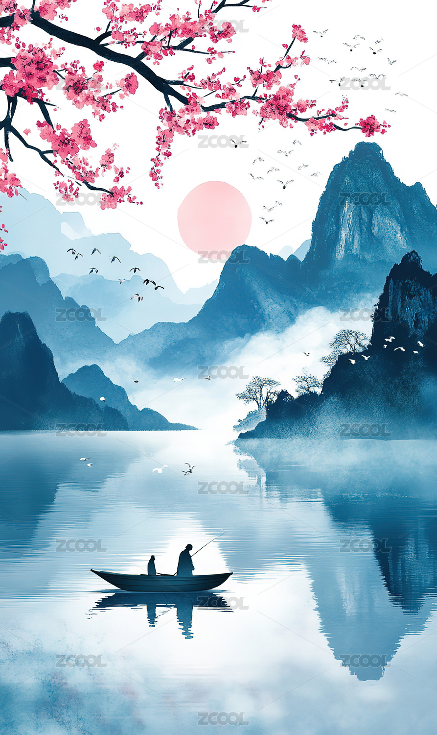 宁静祥和的山水渔夫