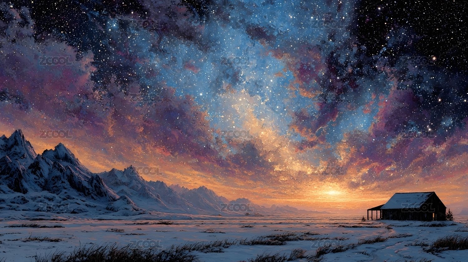 星空下的雪原小屋