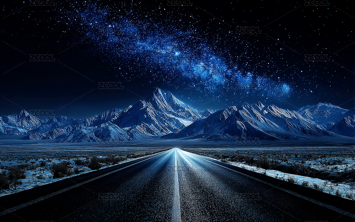 星空下的雪山公路