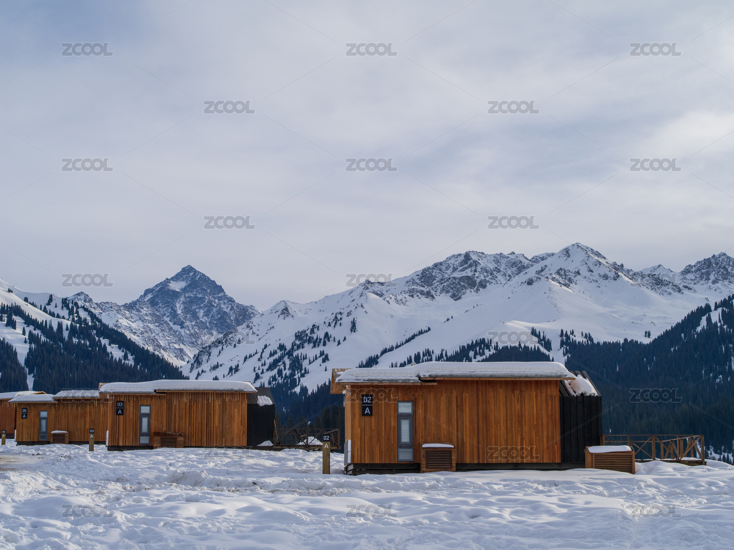 禾木,冬季,春雪,北欧,风格,户外,雪,木屋,度假村,山庄