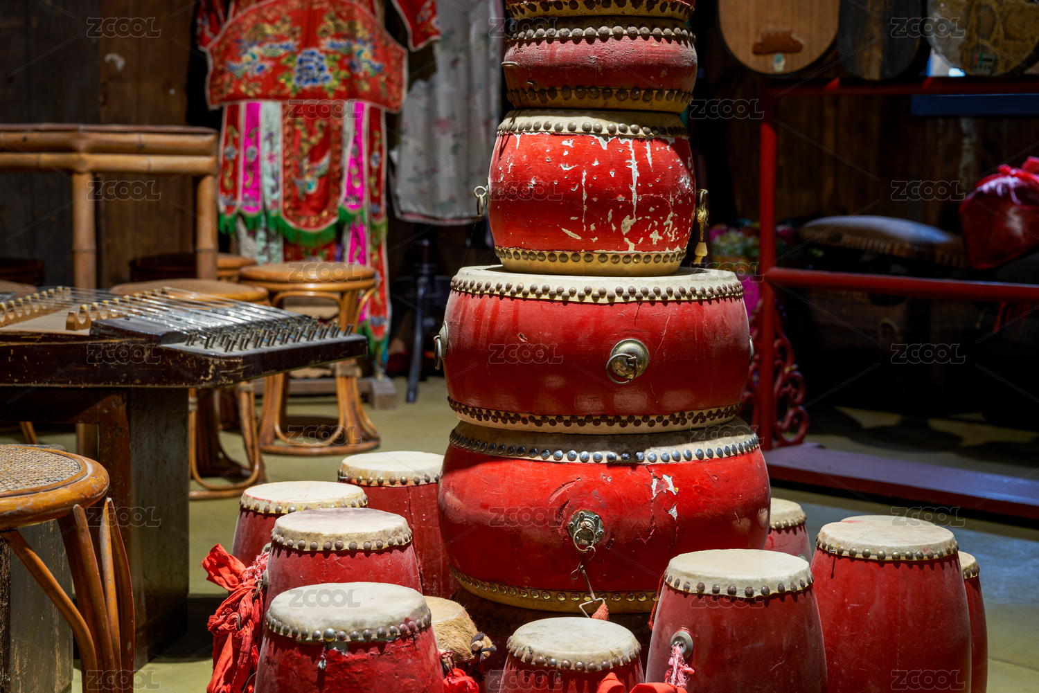 旧货商店里售卖的红色中式鼓