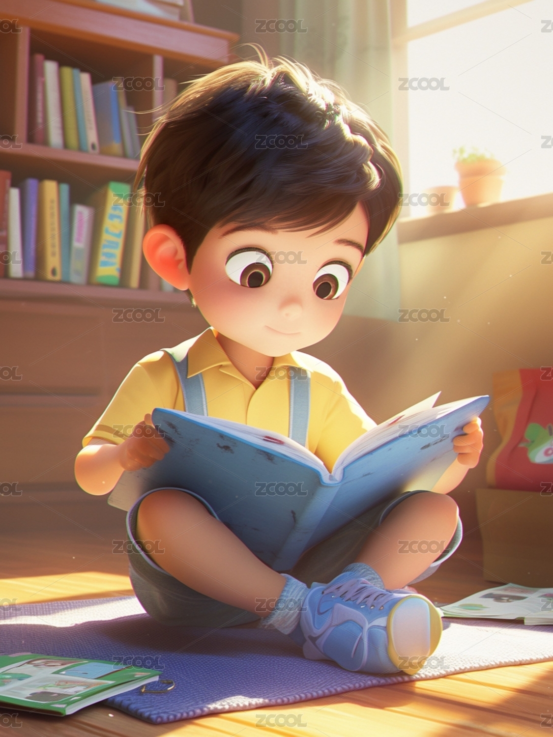 男孩在学习画画3D立体图