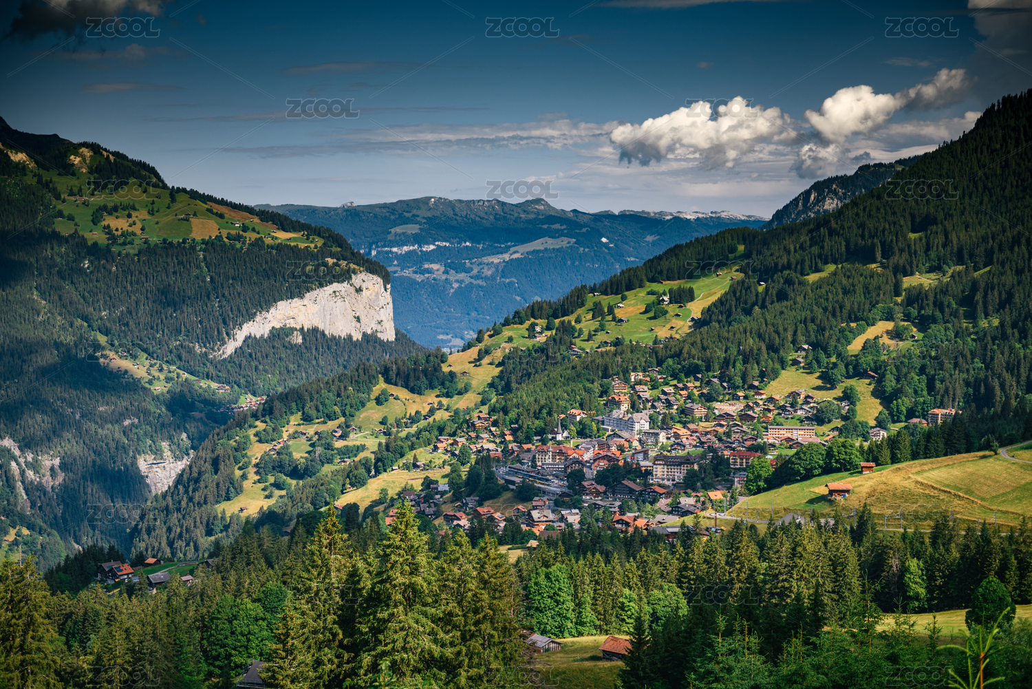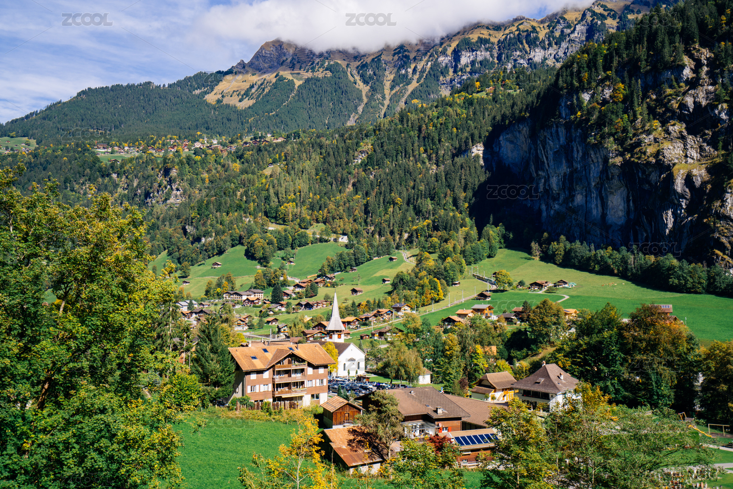 美丽的瑞士小镇劳特布龙嫩位于少女峰脚下