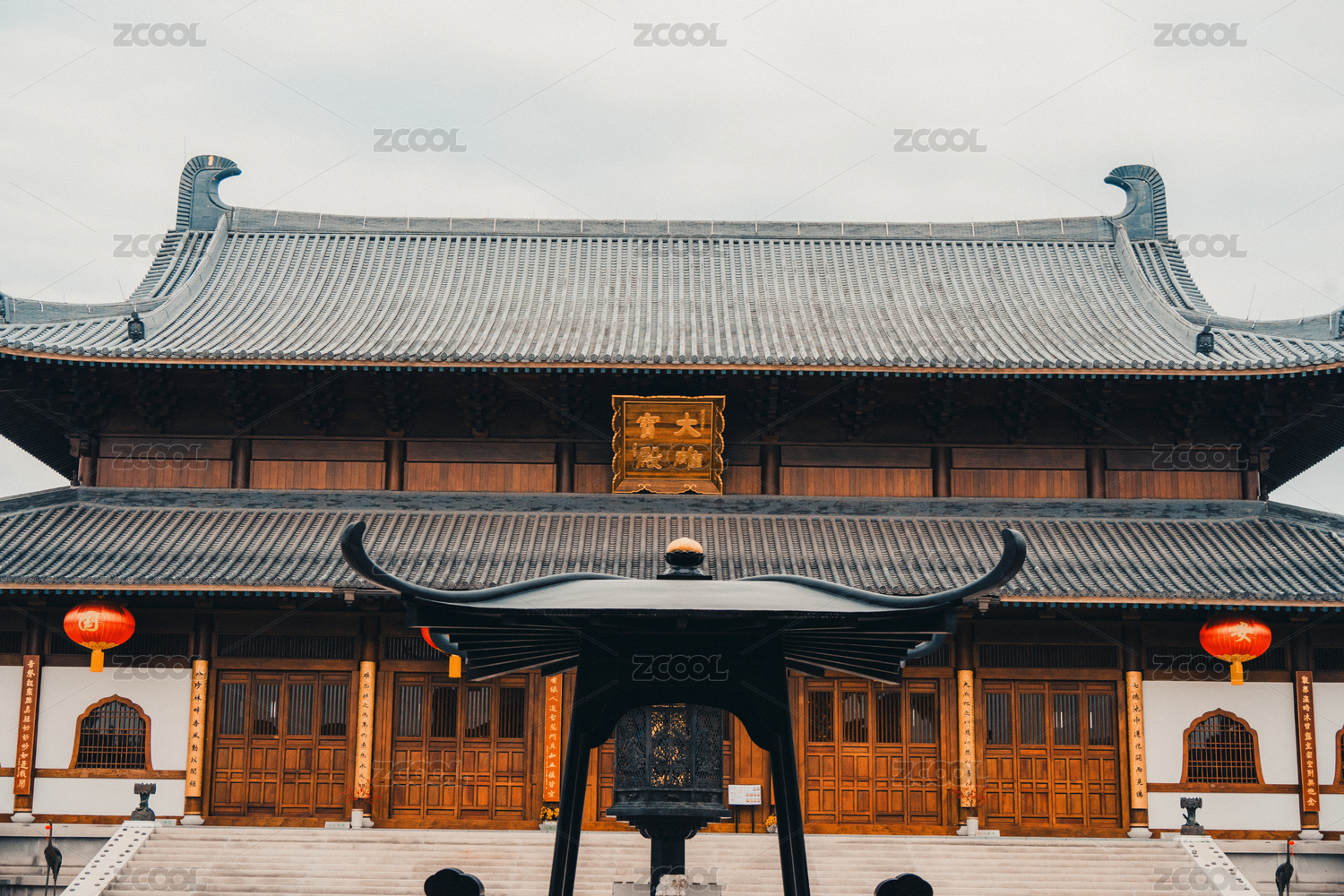 湖南长沙古开福寺-佛殿、钟鼓楼、古银杏