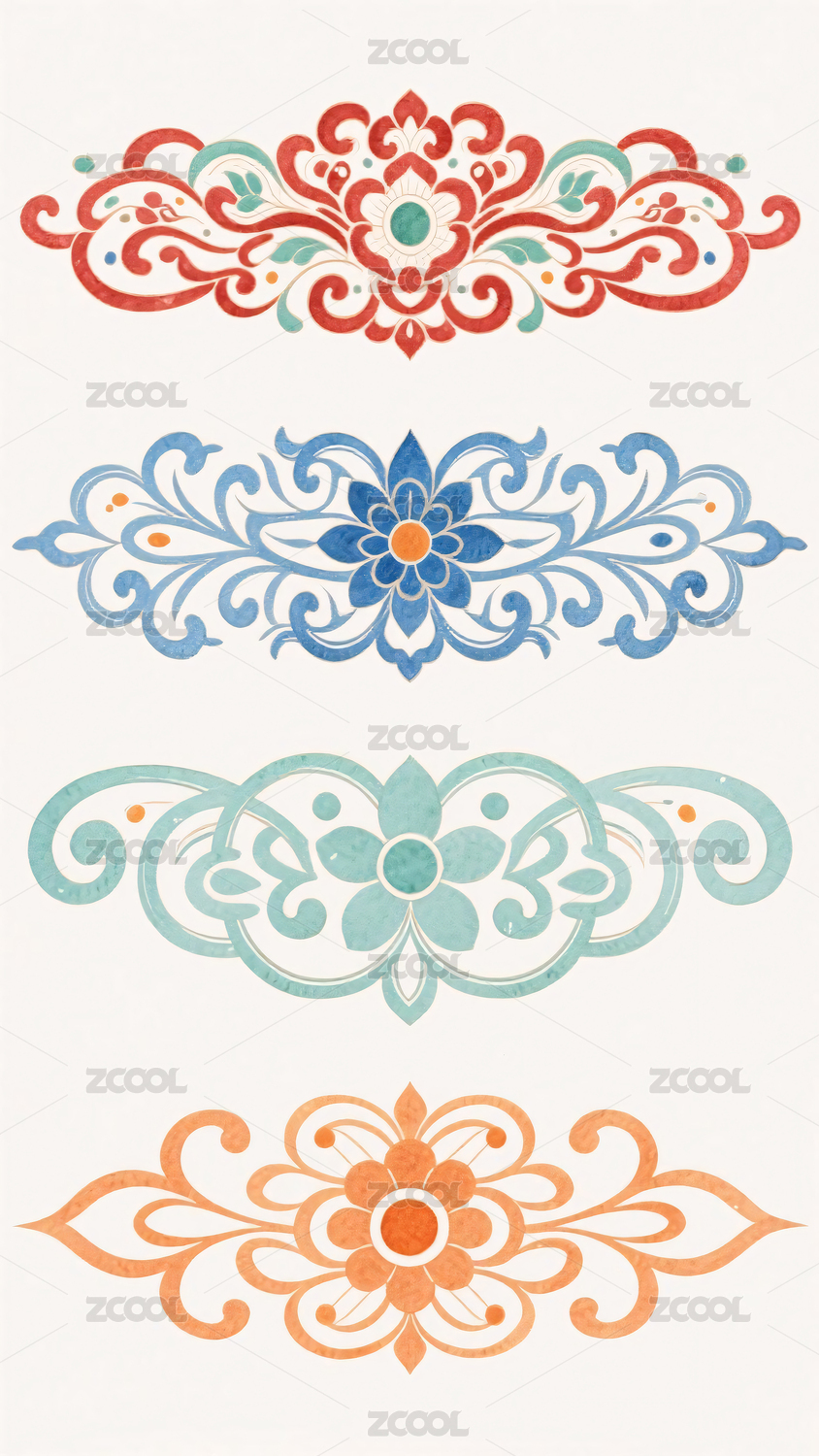 传统的彩色黑白装饰连续花纹图案 黑色背景