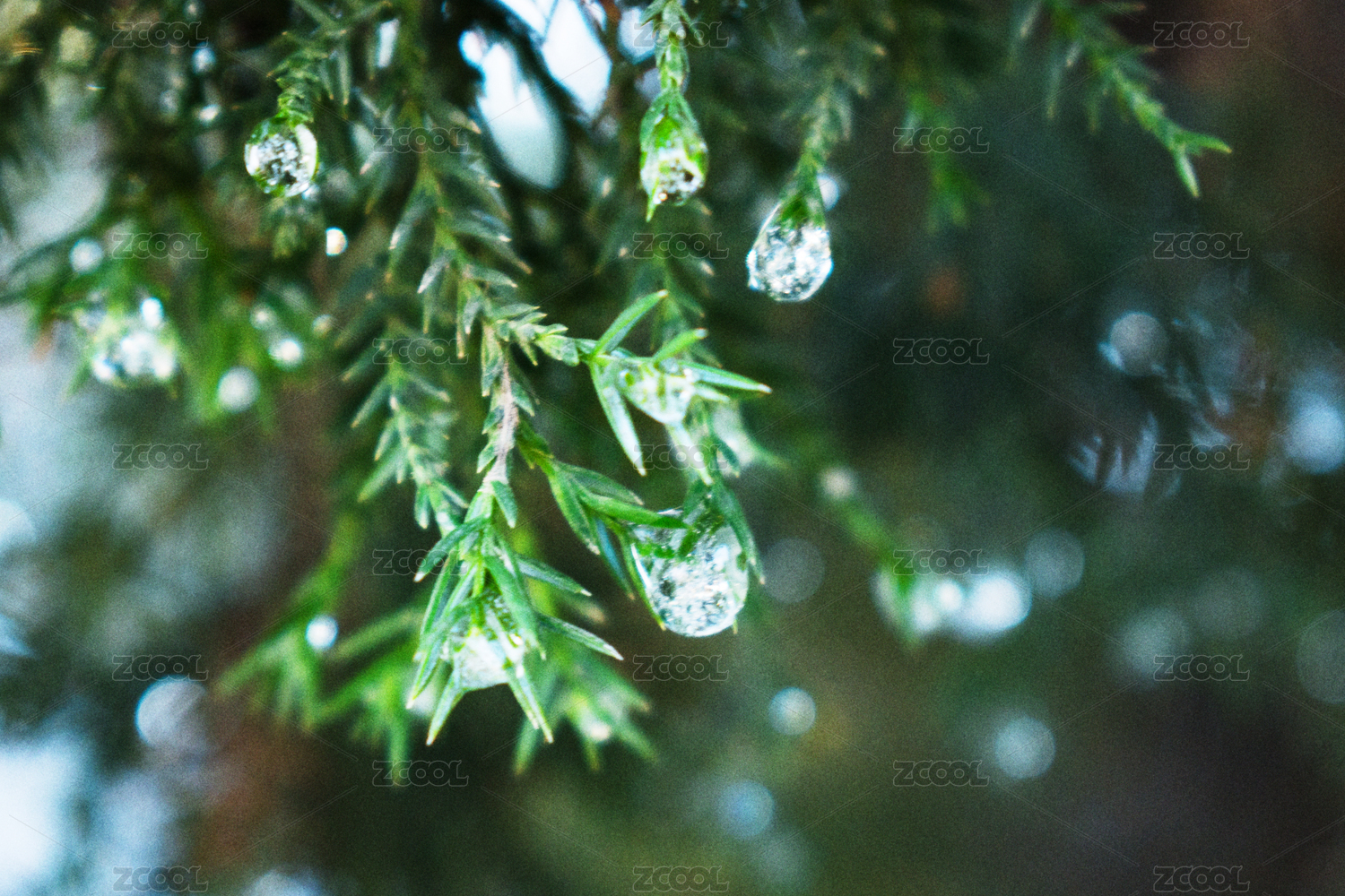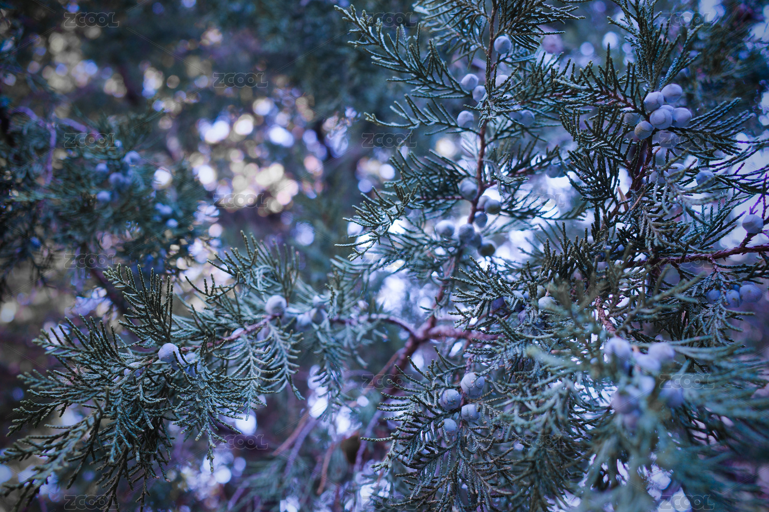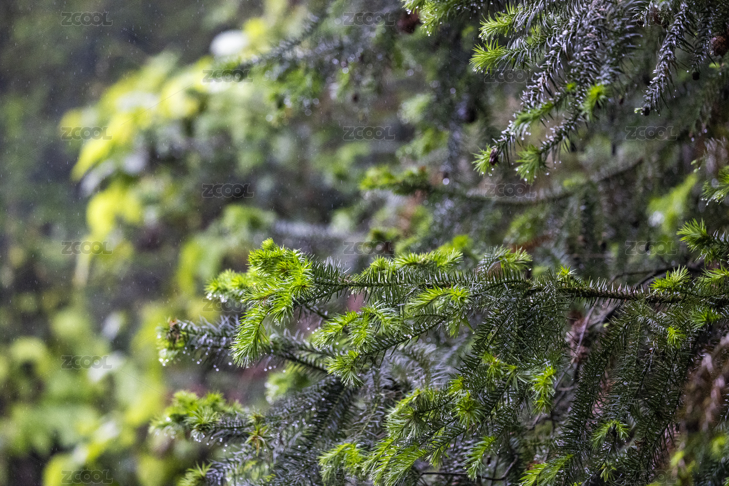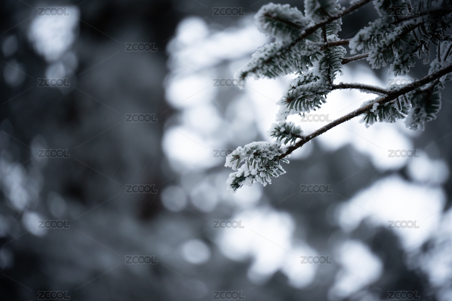 冬季下雪天树林中植物的枝叶上积满了厚厚雪