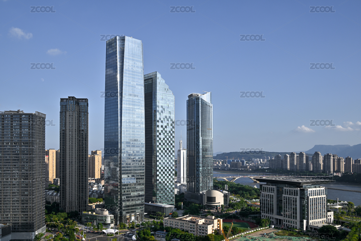 福建省福州市闽江沿岸CBD中的高楼大厦