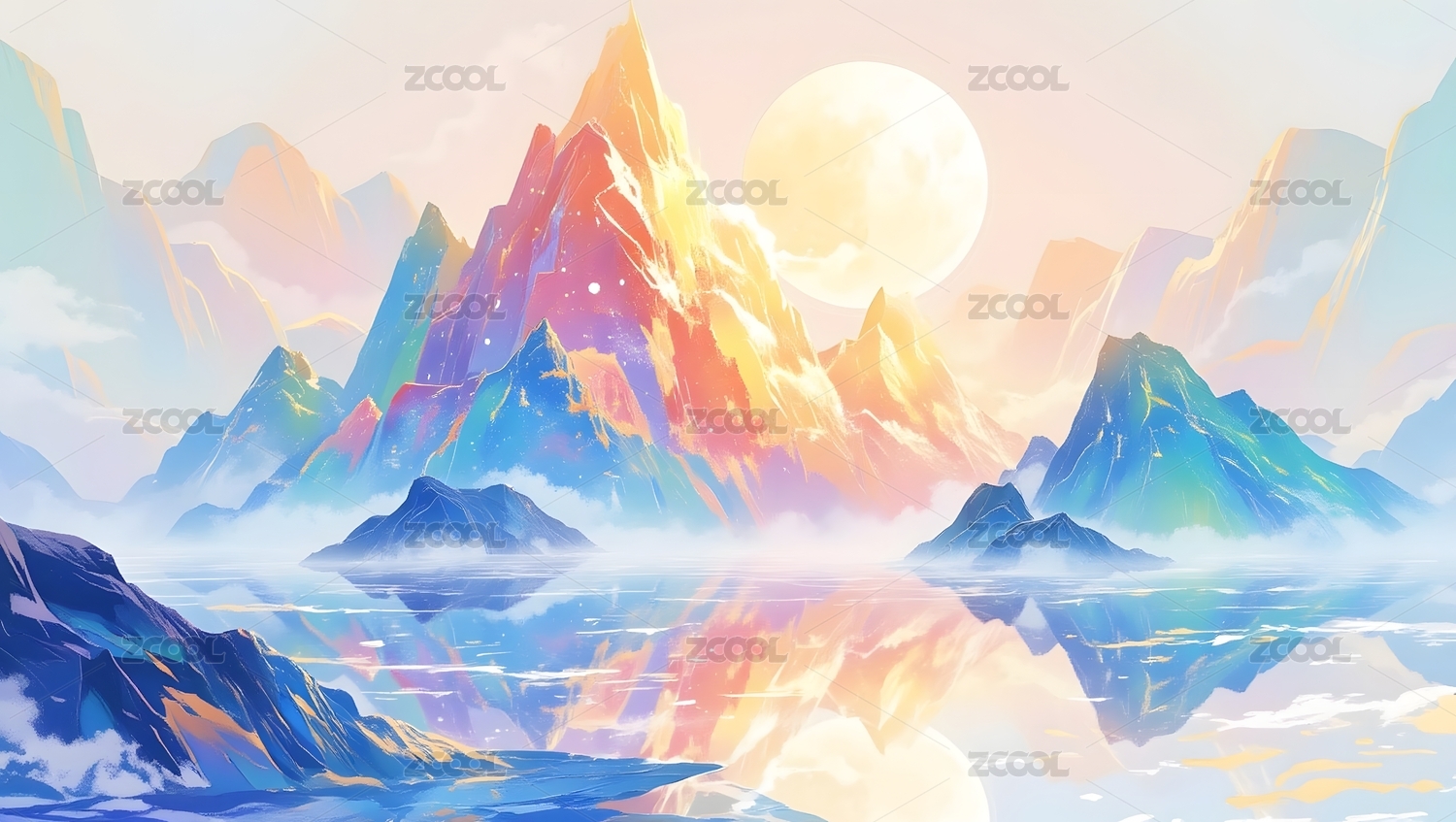 中国传统浅蓝色山水古风国风水墨画背景壁纸