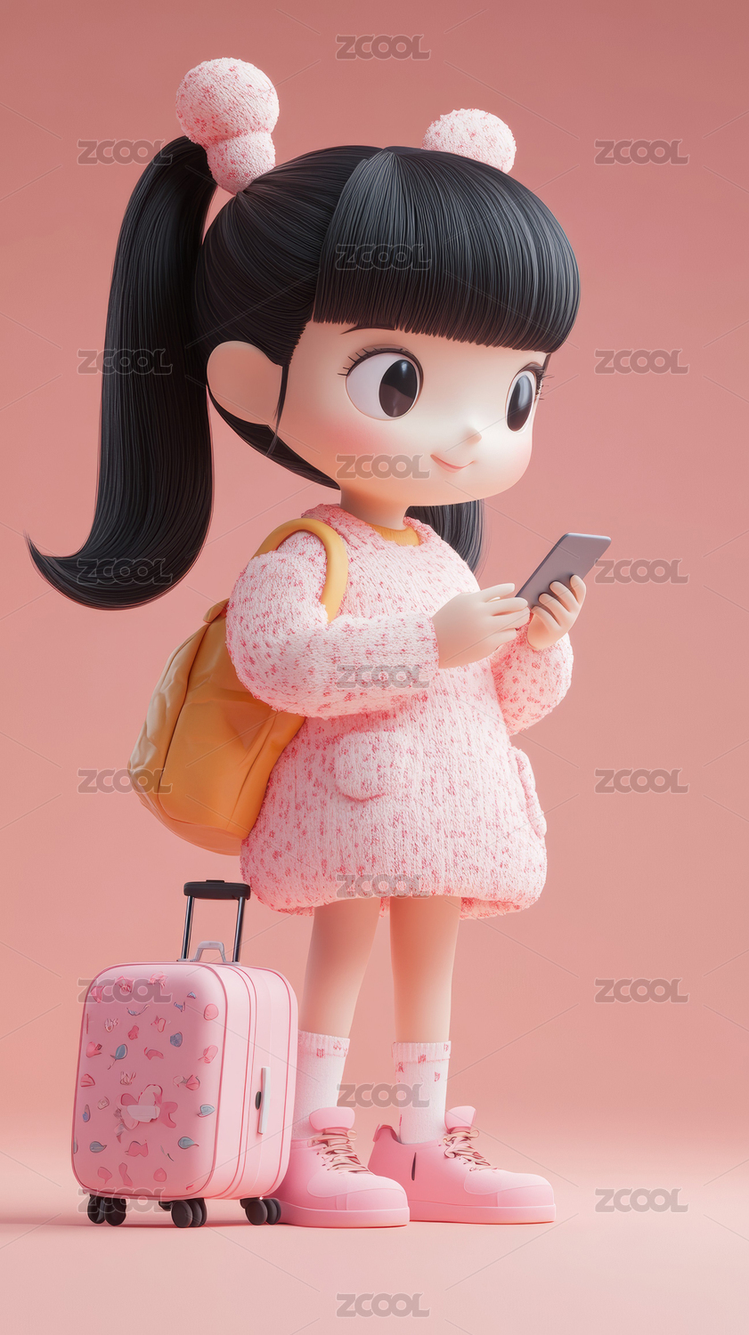 3D渲染的可爱卡通小女孩儿童节概念插图