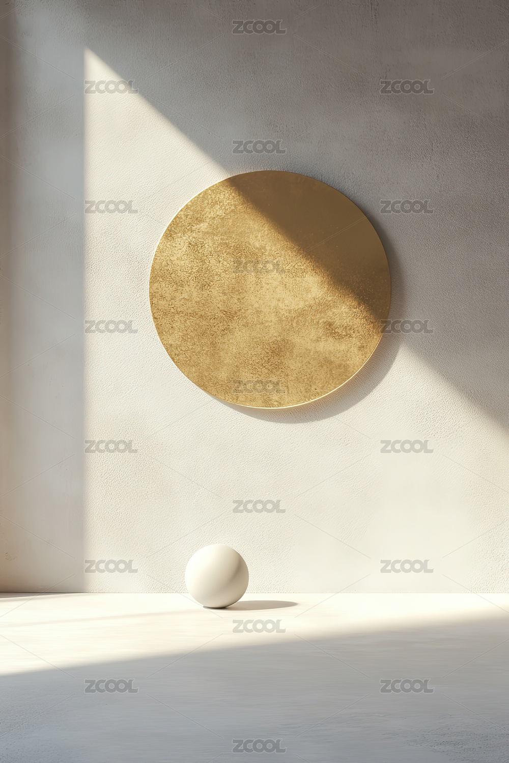 极简,简单,3D,现代,室内,石头,墙面,展台,光影,镜子