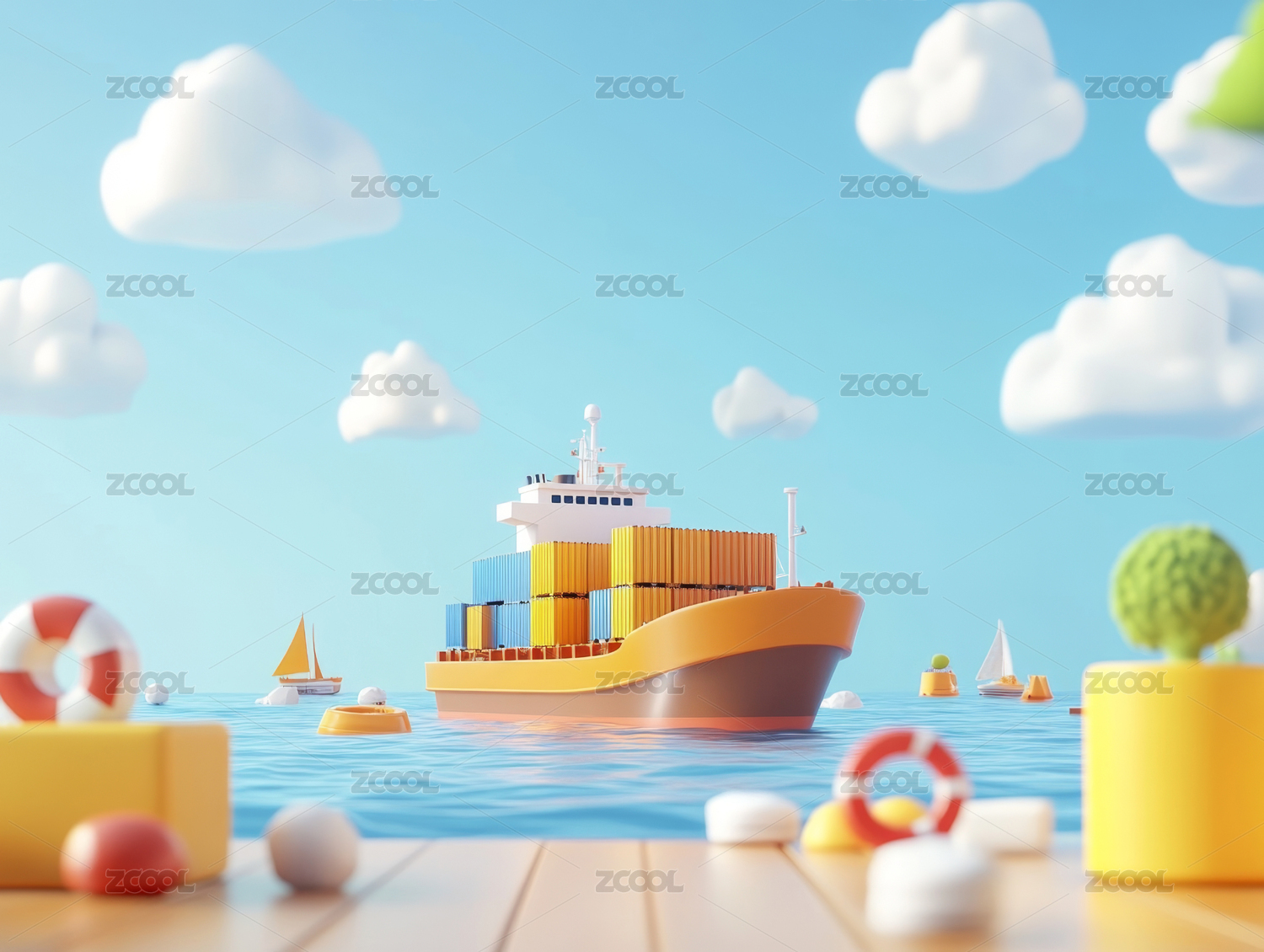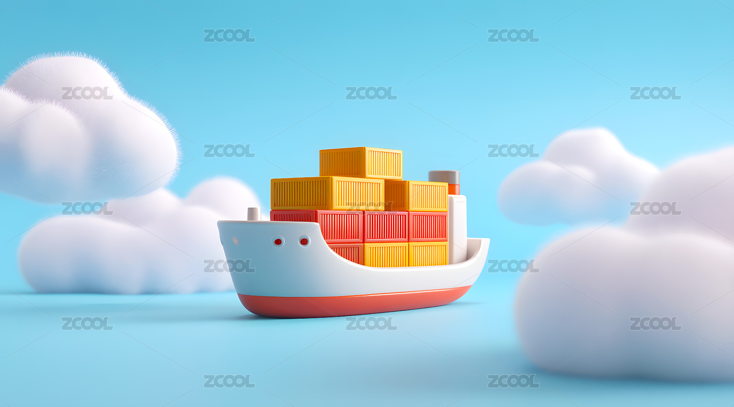 船舶,船体,创意,风格,海洋,航行,货船,卡通,可爱,蓝色