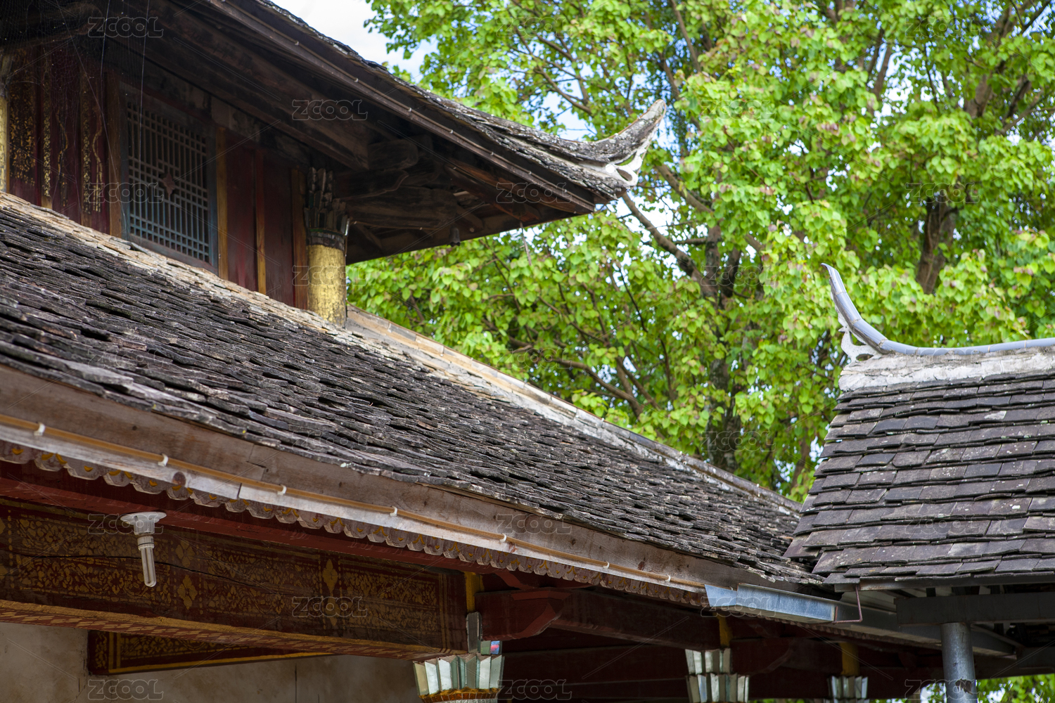 普洱孟连娜允古镇的中城佛寺的佛殿飞檐