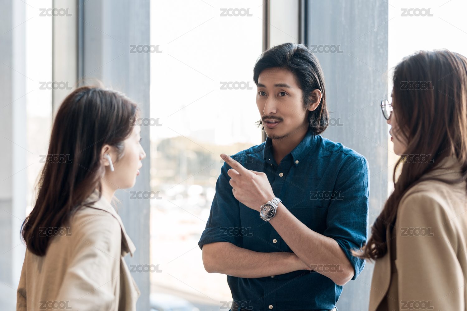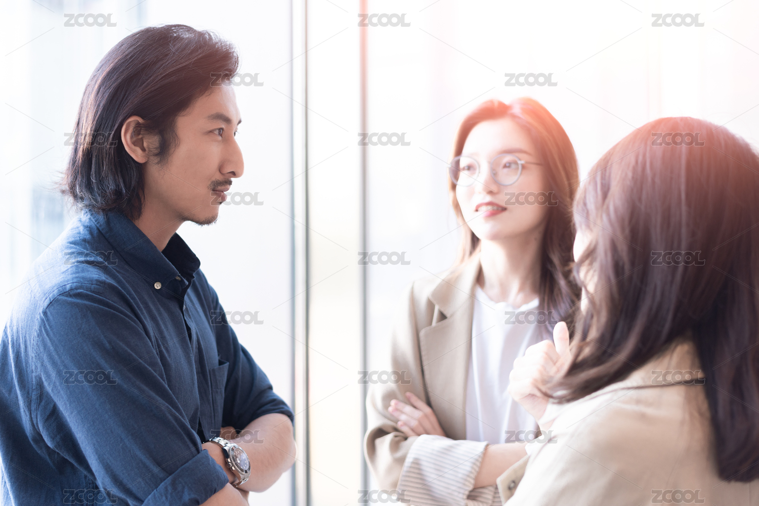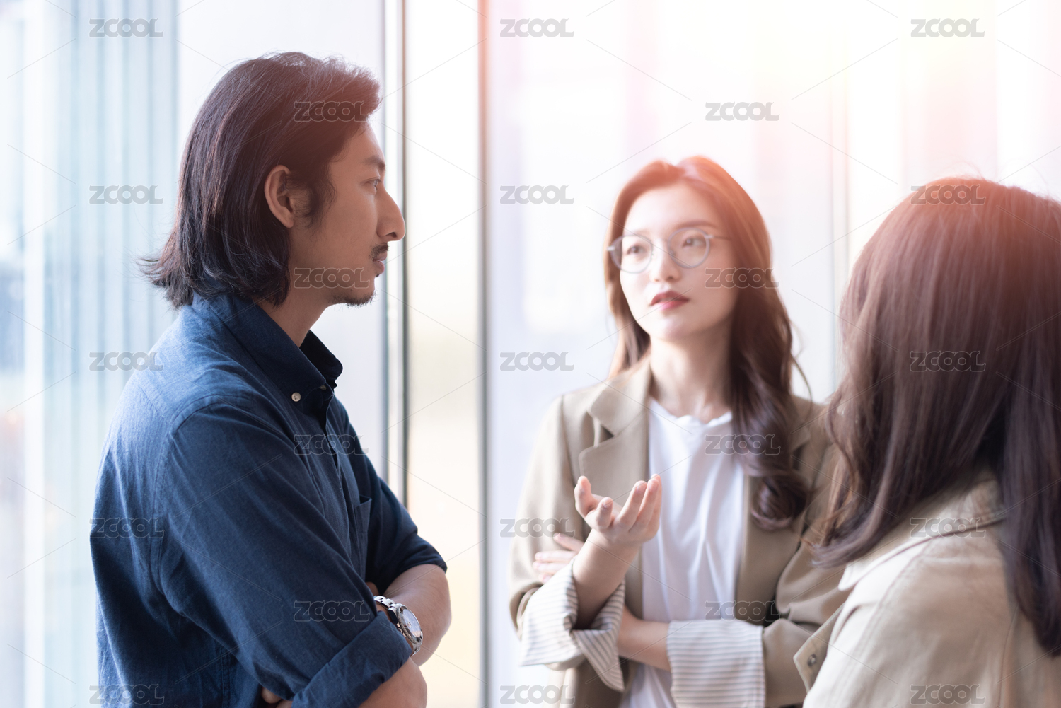 三位年轻的白领阶层商务人士正在交谈