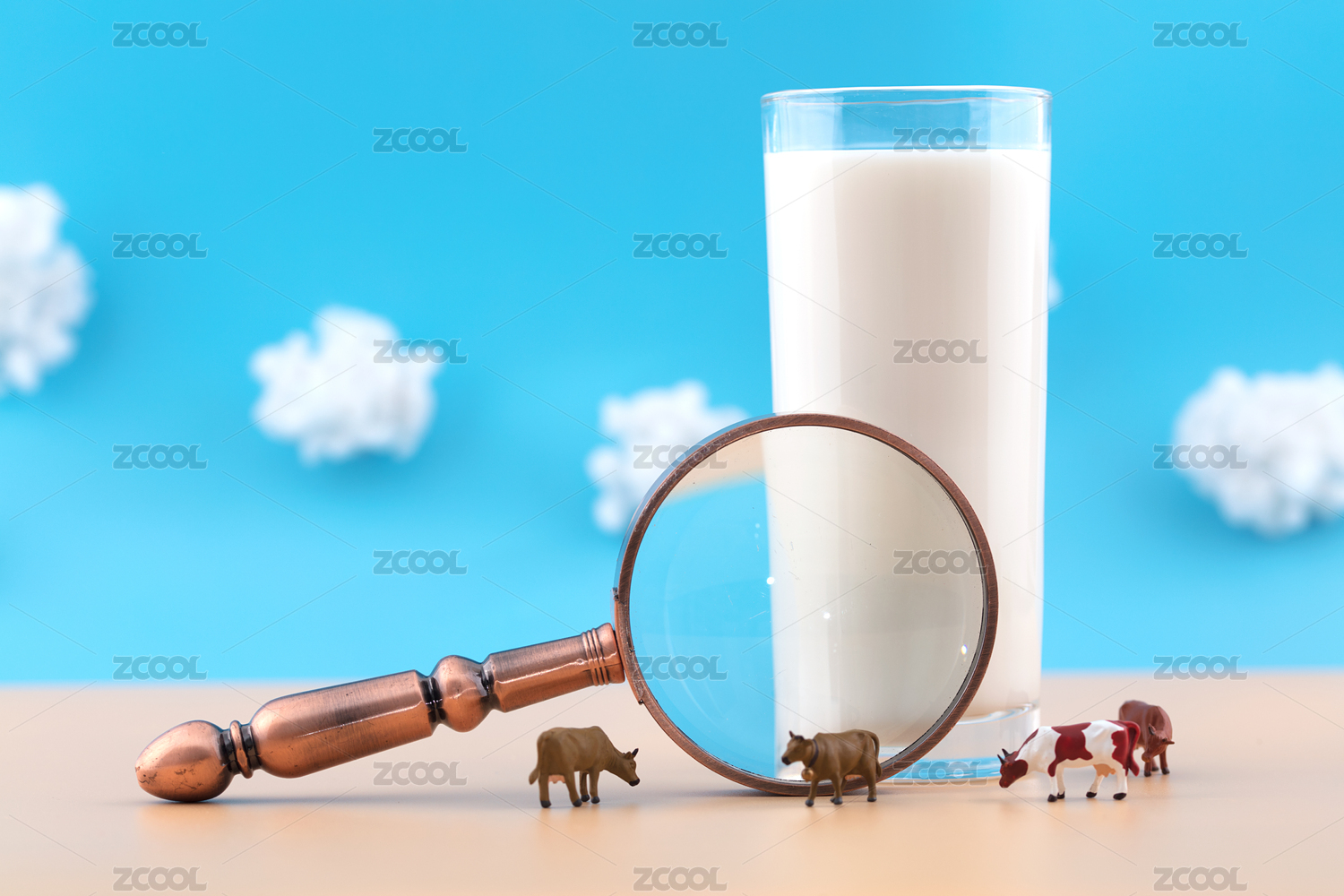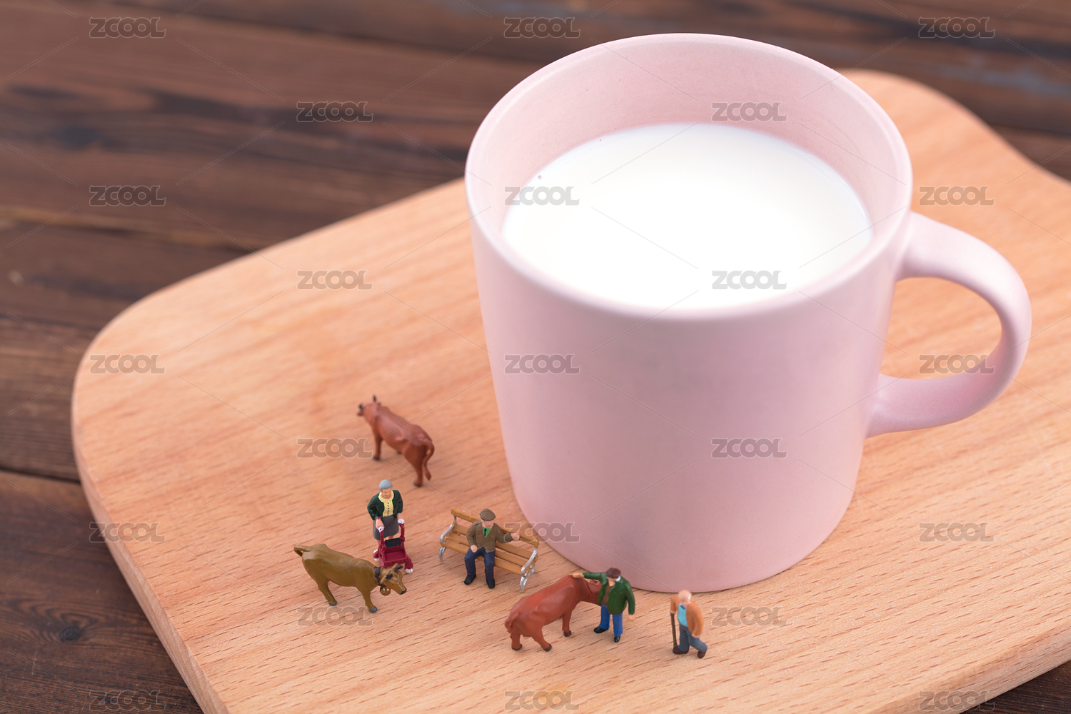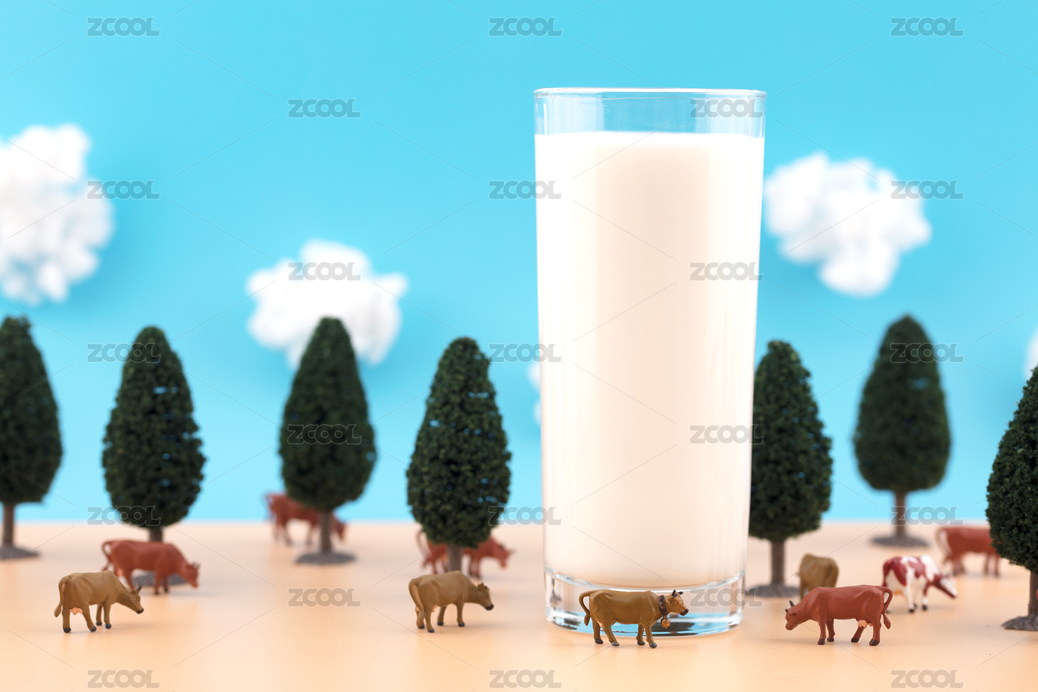 微缩创意一杯牛奶和奶牛