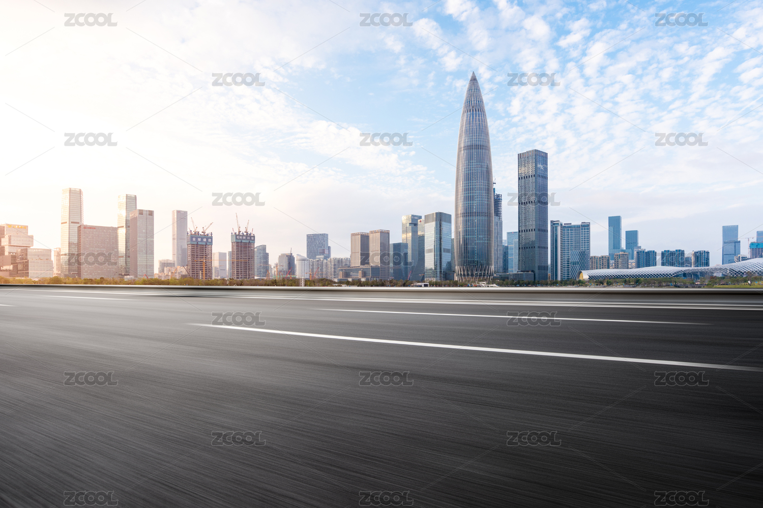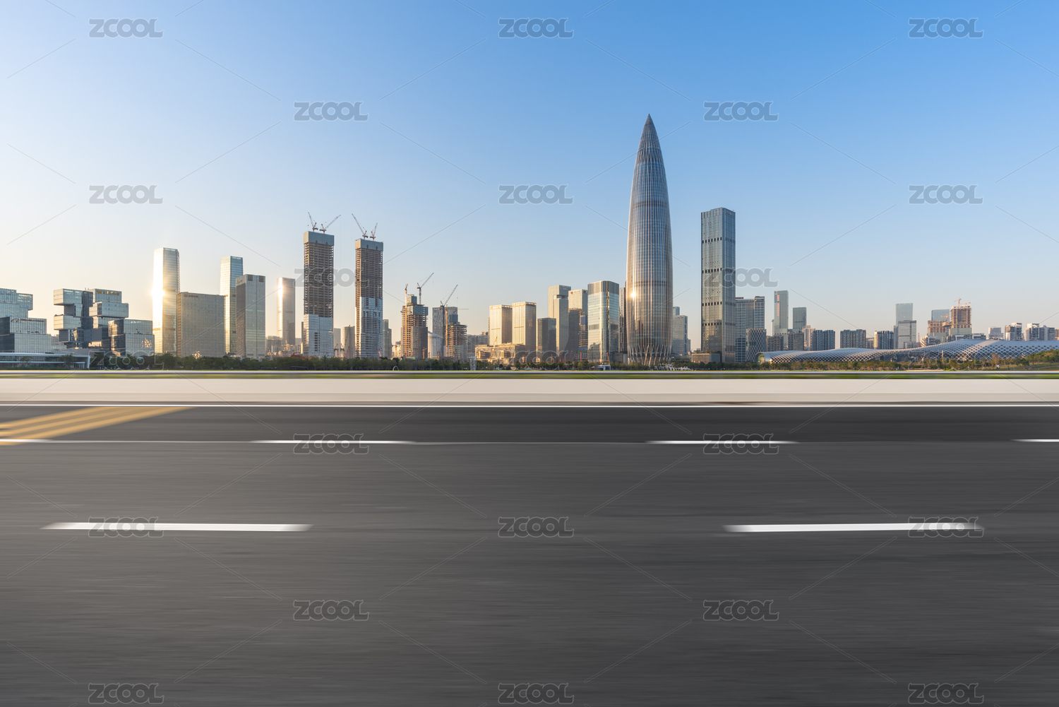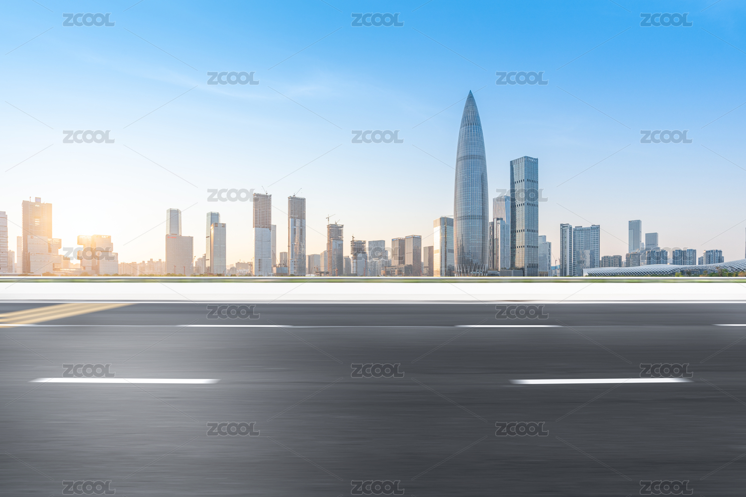深圳后海CBD城市风光和空白的机动车道