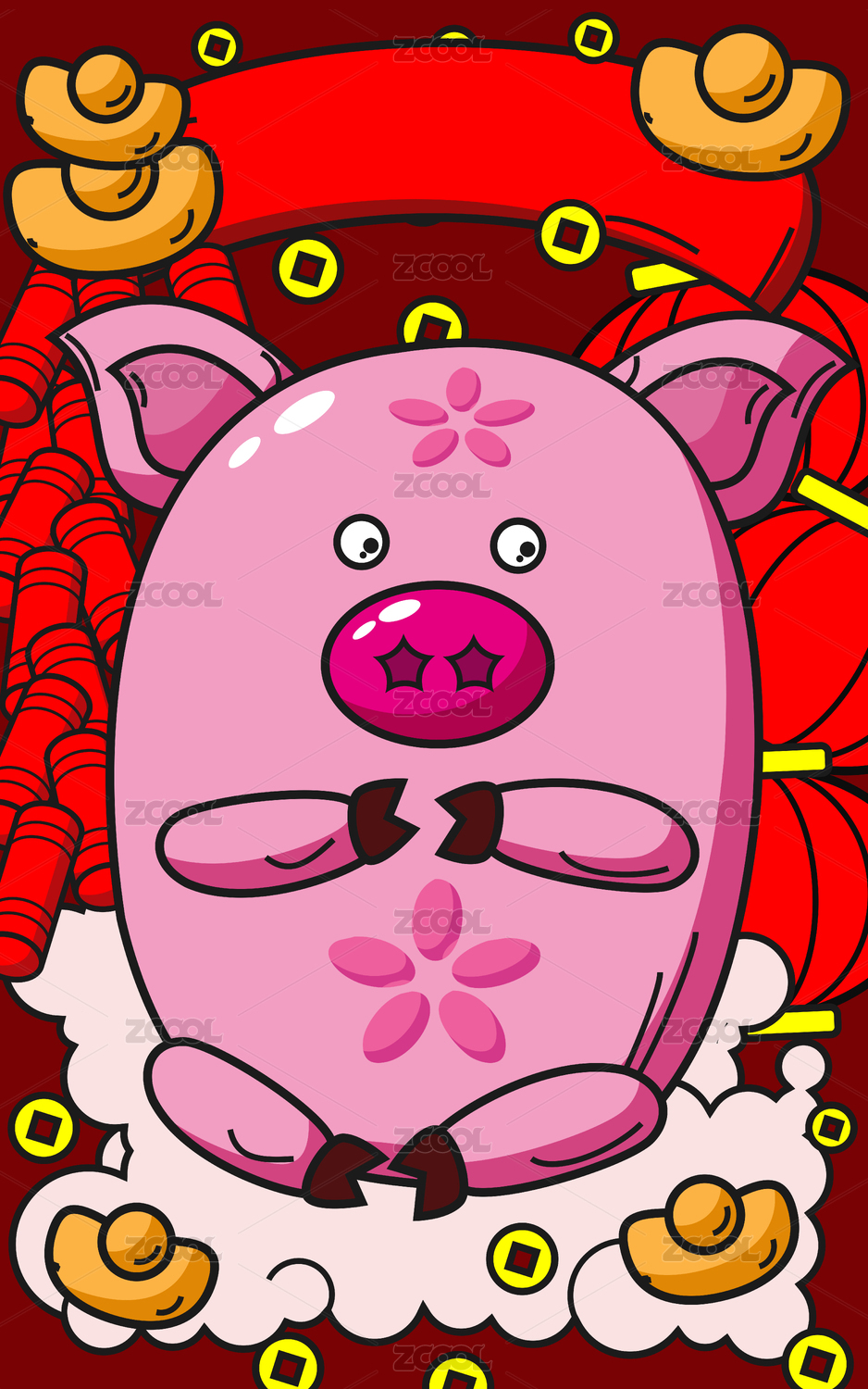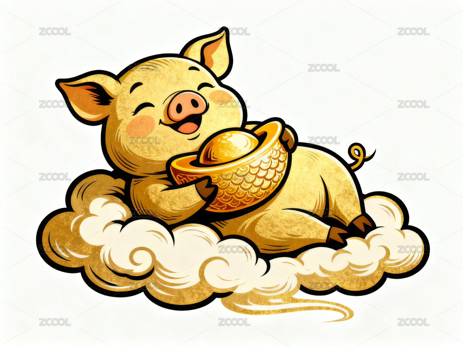 金猪抱元宝,祥云送福来