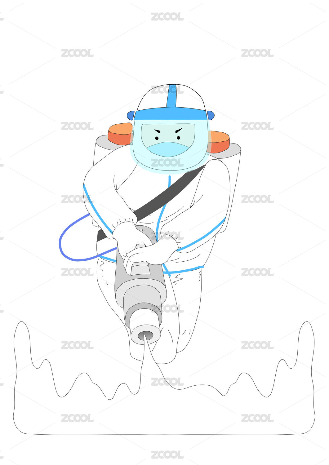 身穿防护服的志愿者正面拿着消杀工具消杀