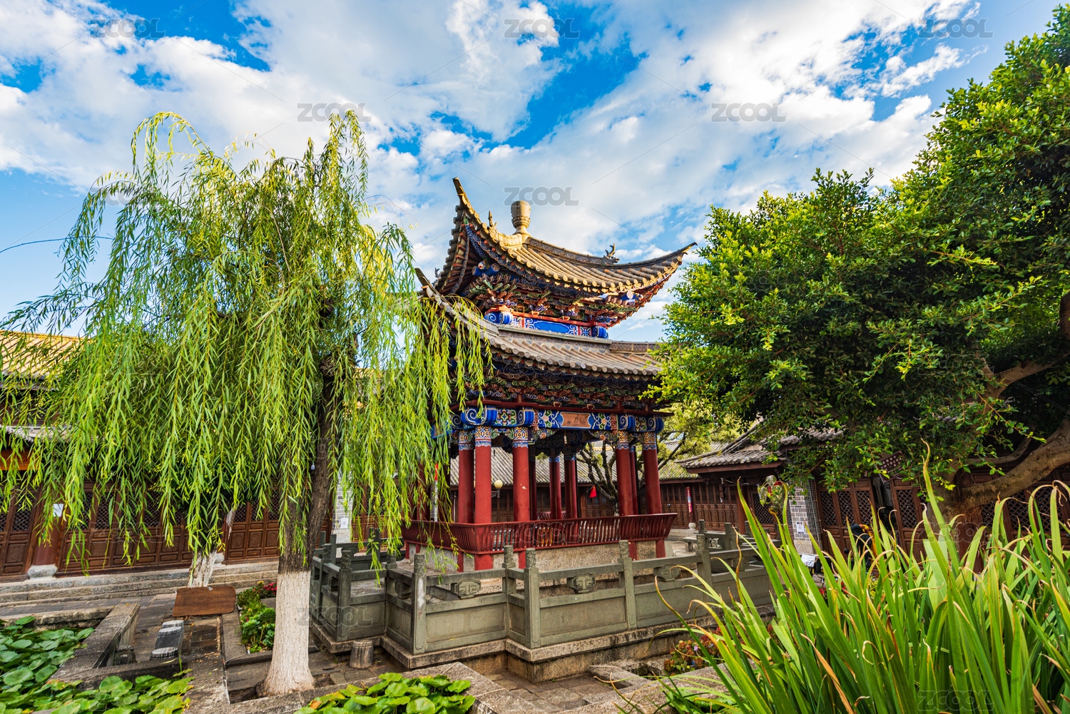 云南,大理,大理古城,古城,古建筑,旅行,旅游,亭子,柳树,清晨