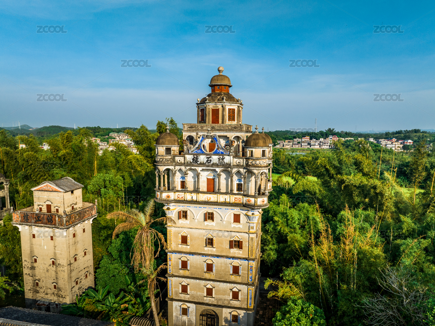 世界文化遗产广东开平锦江里瑞石楼稻田碉楼