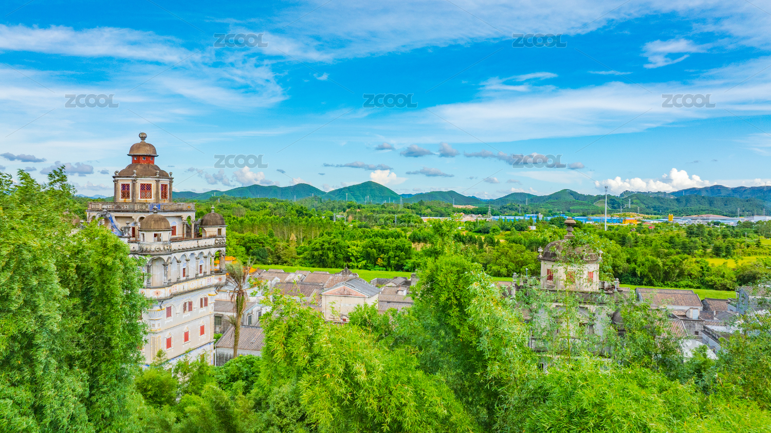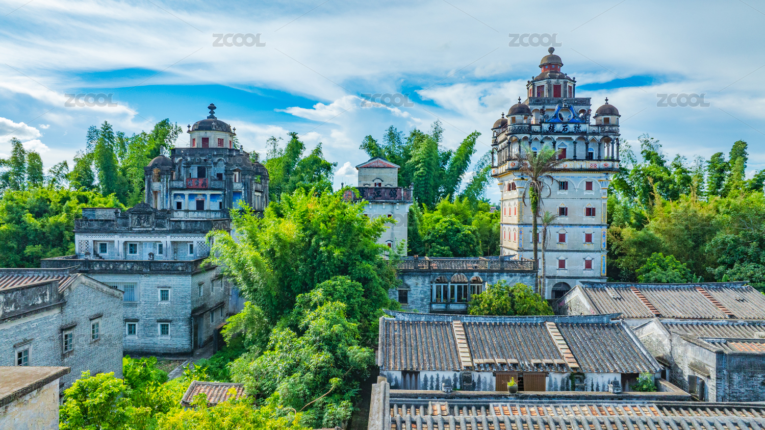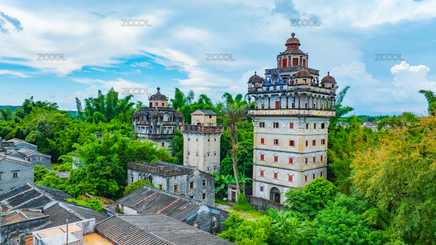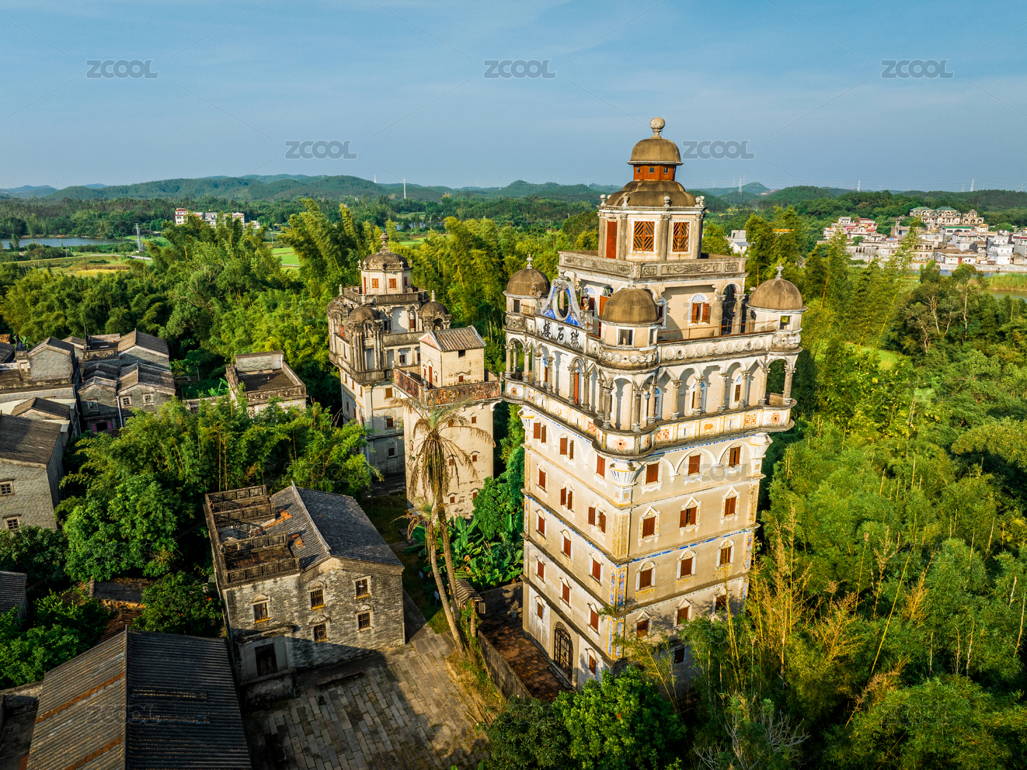 开平碉楼锦江里碉楼群夏日午后
