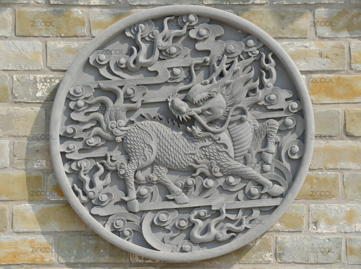 广东深圳赤湾天后宫中华海神照壁砖雕 麒麟