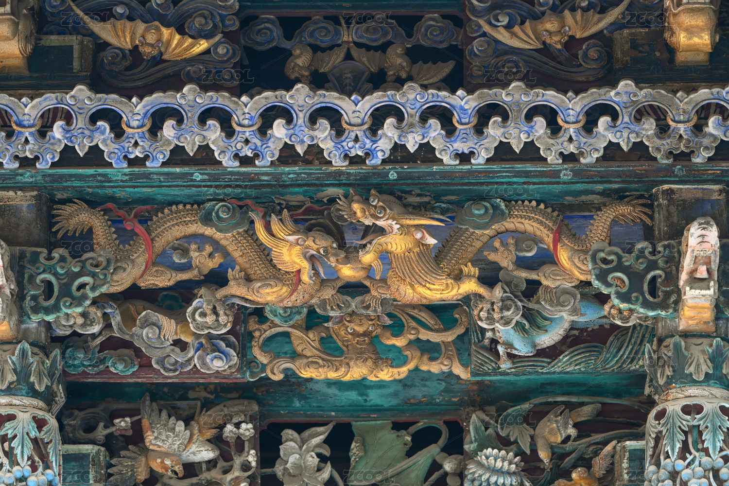 中国山西省平遥古城市楼古建筑上的雕龙雀替