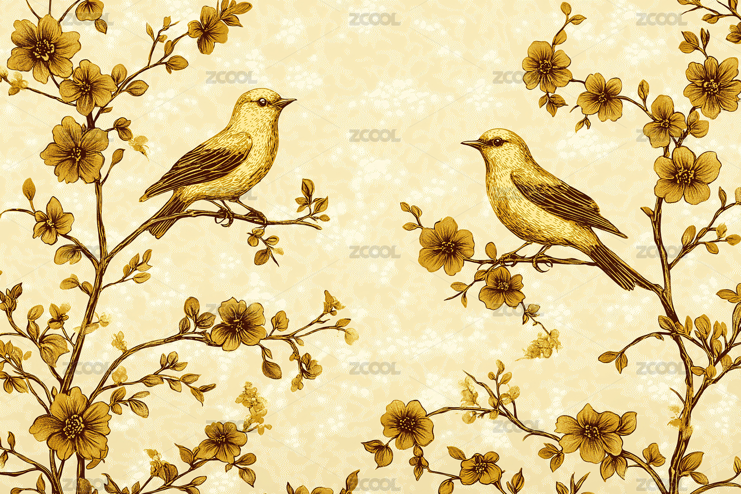 复古花鸟图案平铺底纹壁纸墙纸包装纸花色式