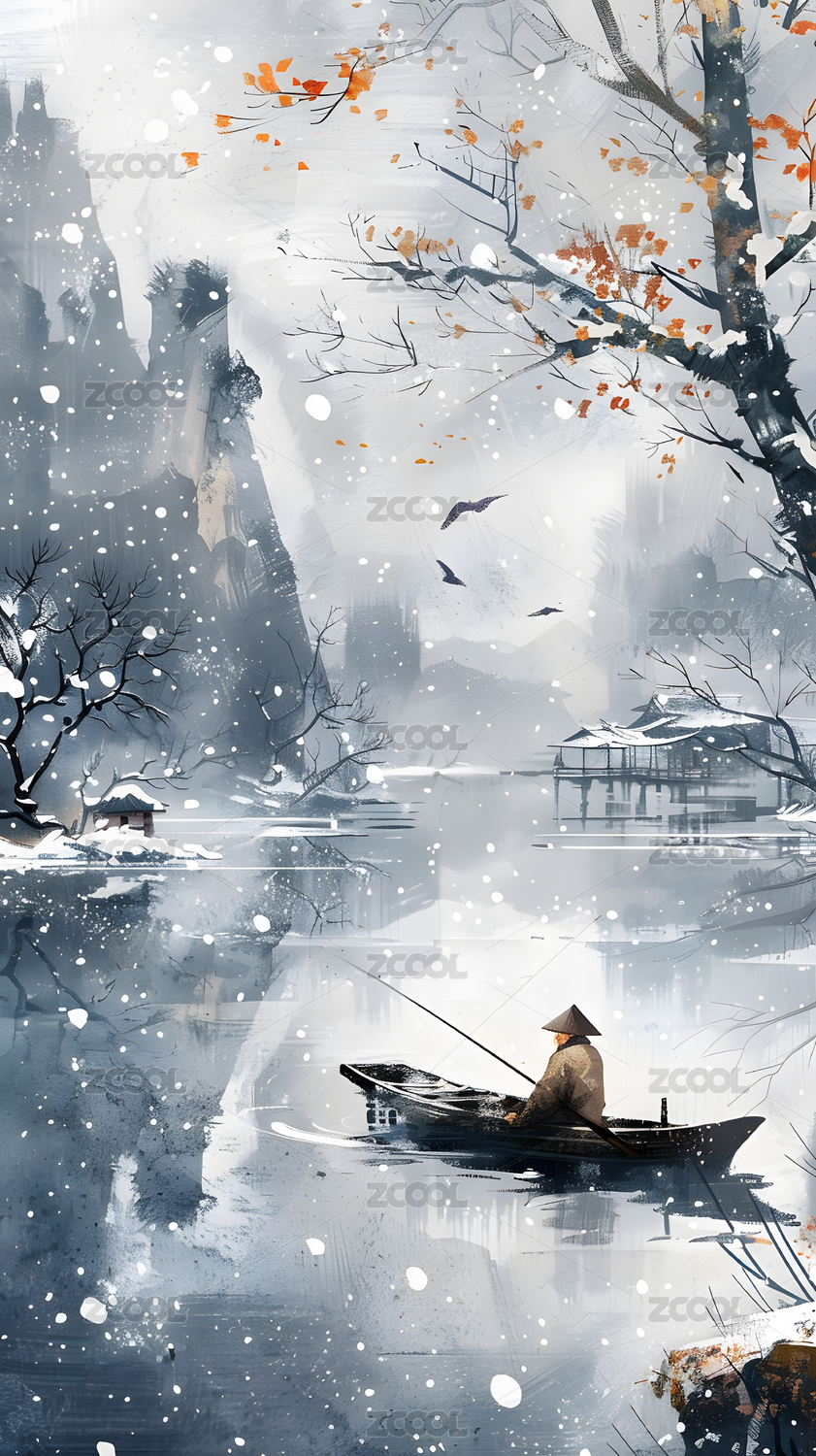 雪中孤舟
