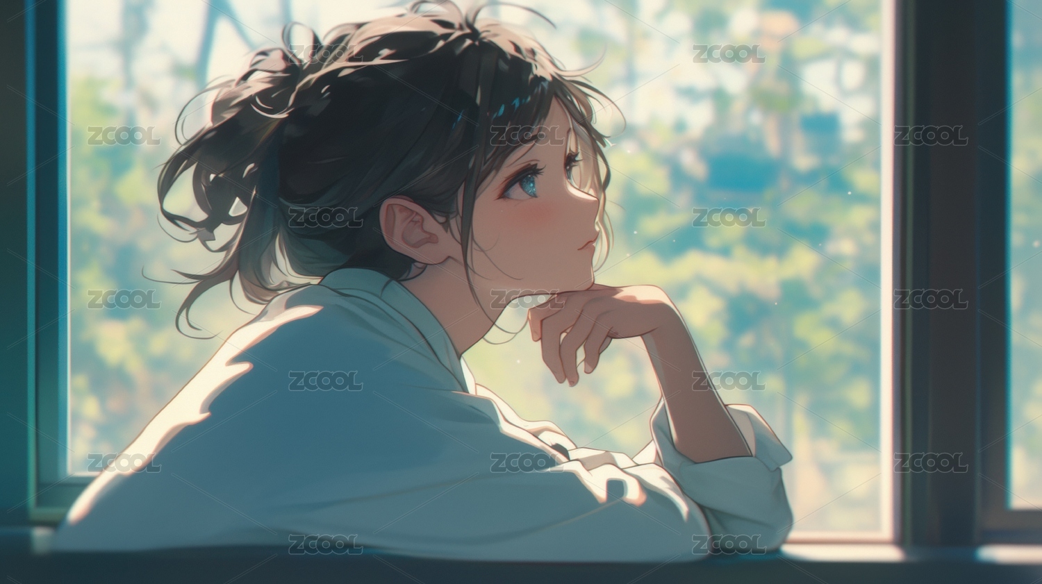 AIGCFG01,短发,女孩,卡通,插画,日漫