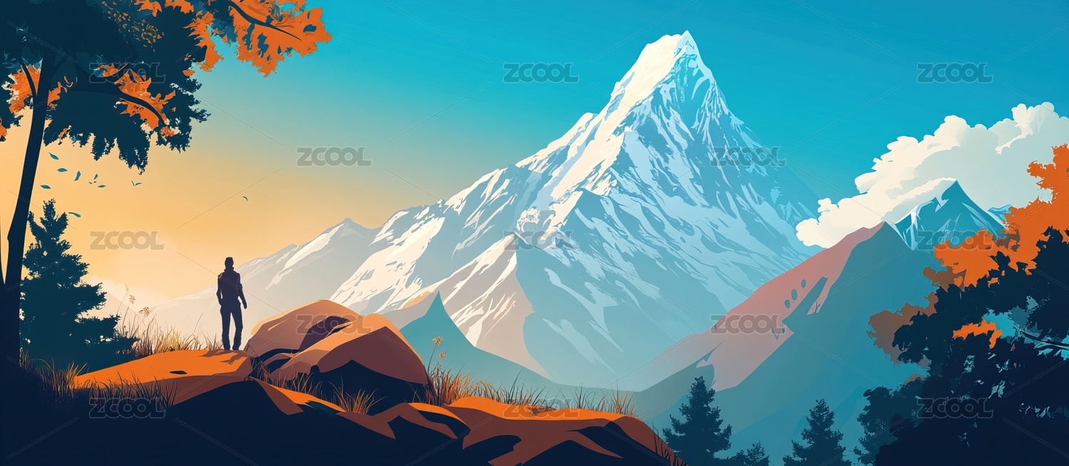 登山者在雪山顶峰沐浴日出的辉煌光芒