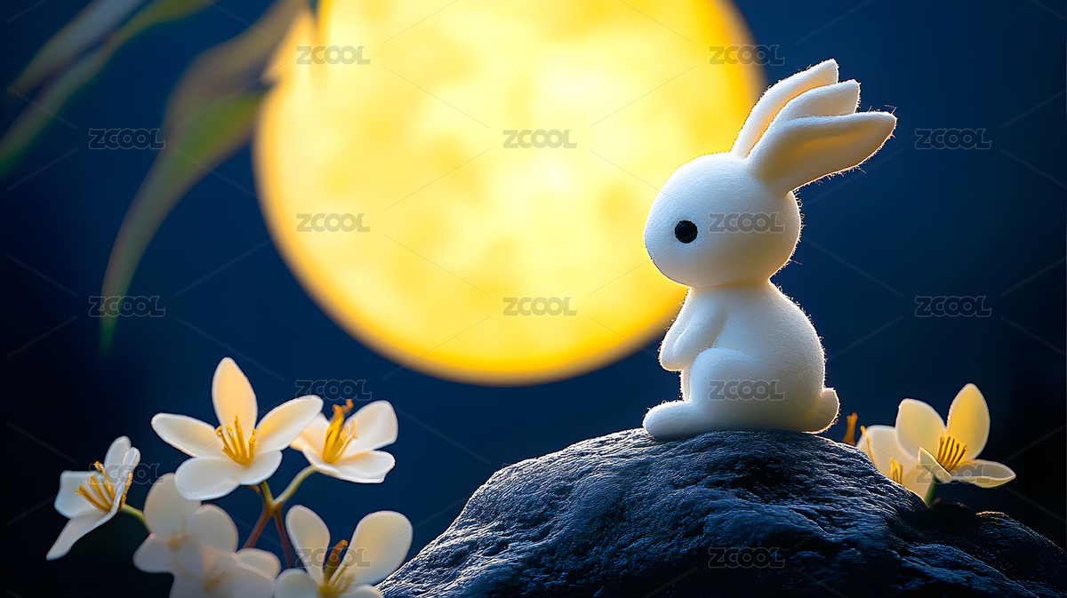 中秋节,节日,月亮,兔子,桂花,玉兔,3D,AIGC202403