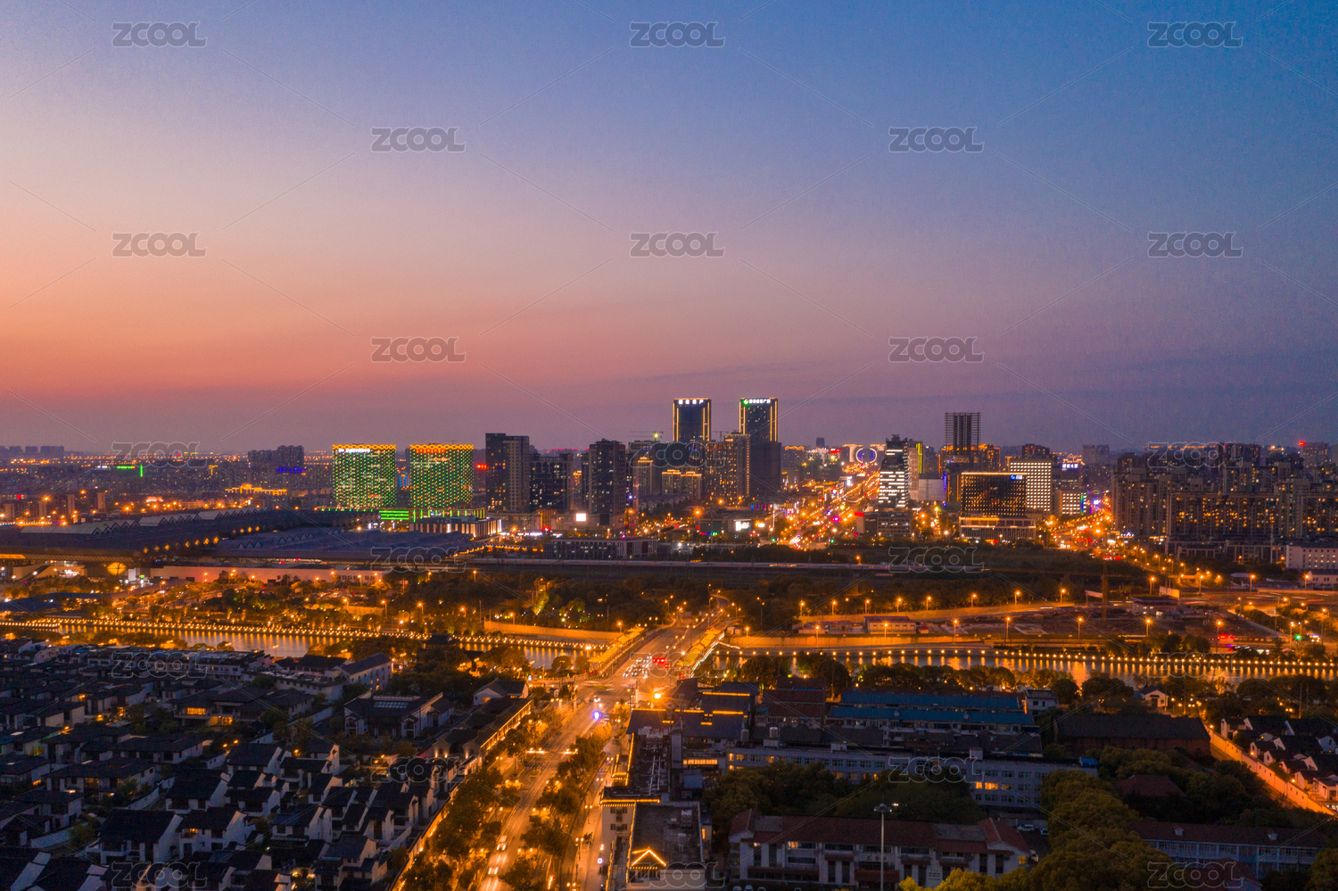 中国江苏苏州工业园区傍晚航拍