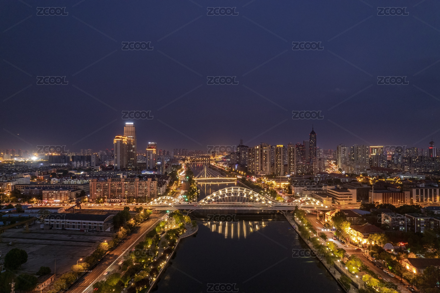 中国天津站航拍城市风光夜景