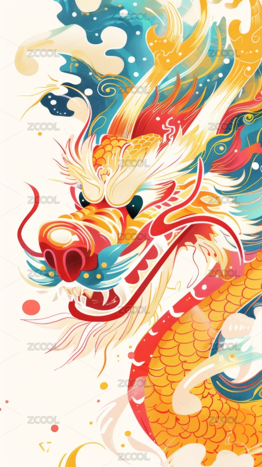龙,可爱,灯笼,珠光宝气,新年,中国年,龙年,花开富贵