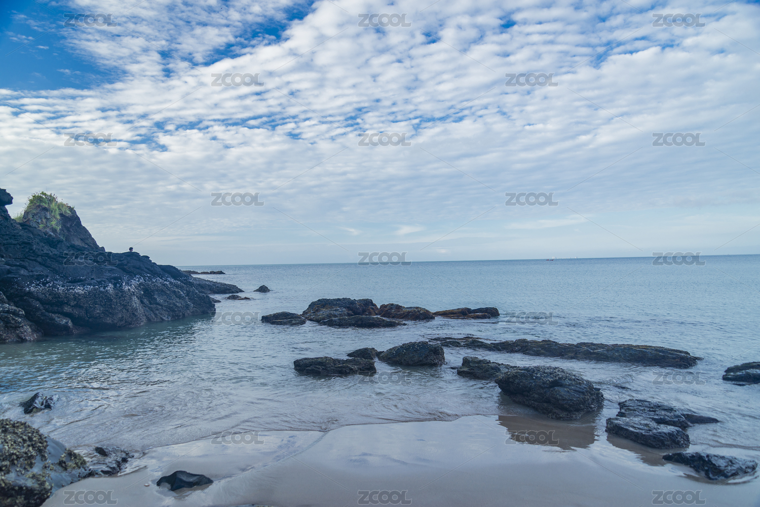 涠洲岛大海边火山口地质公园悬崖下沙滩石头