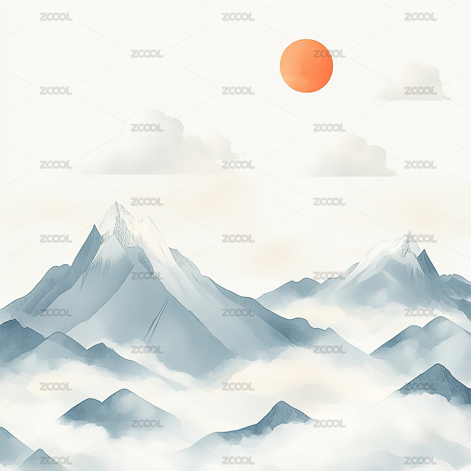 白雪皑皑的群山在晴朗的天空中俯瞰