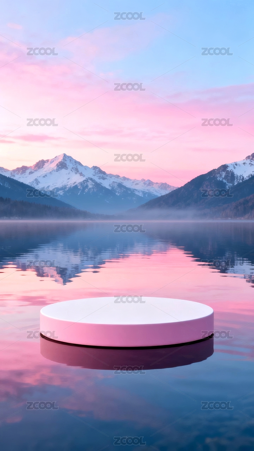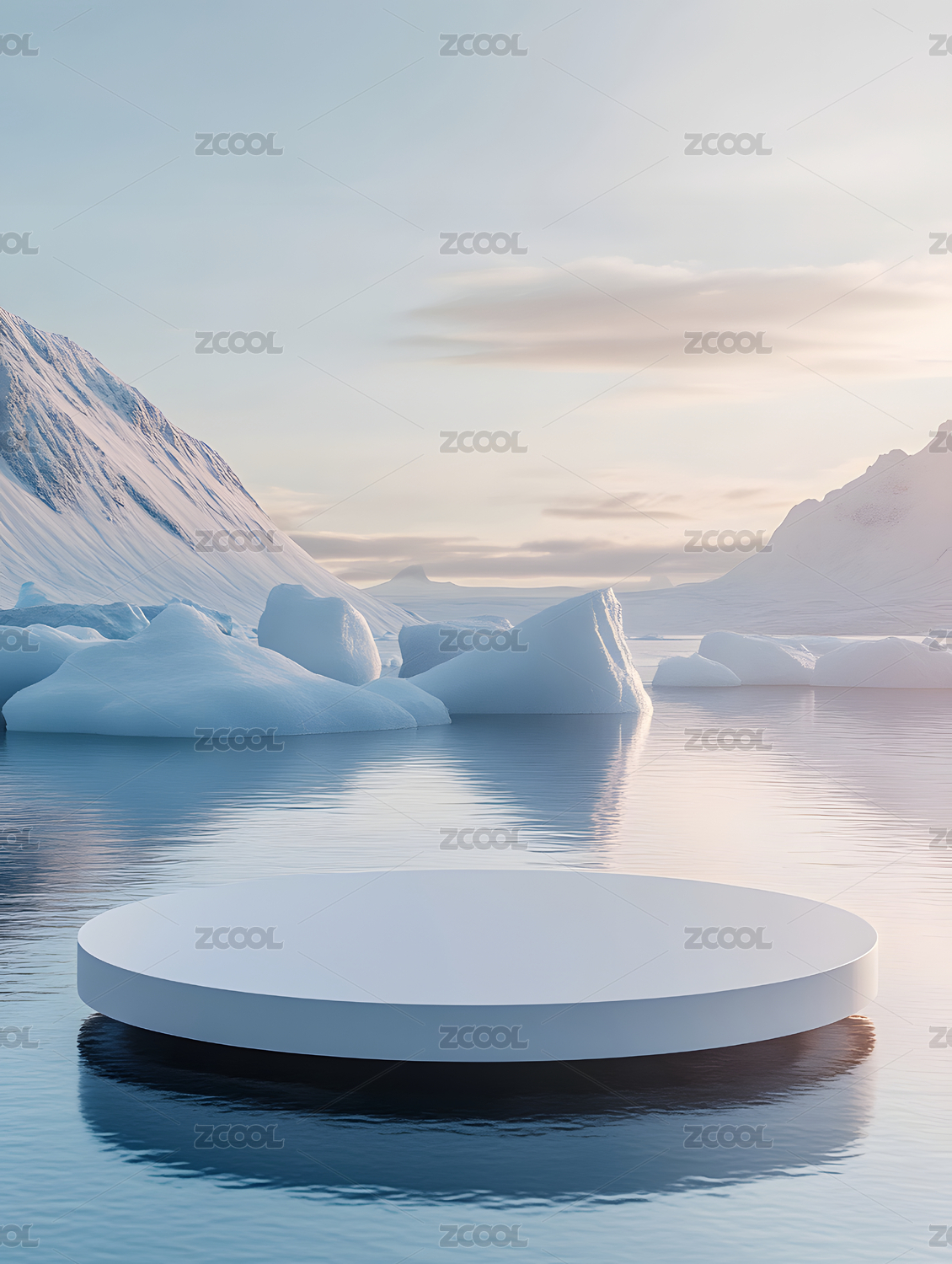 创意立体展台自然冰川雪山晚霞电商展示背景