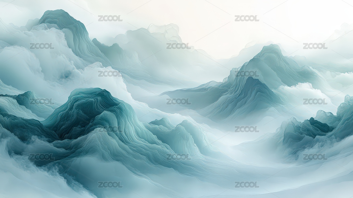水墨云雾连绵山脉