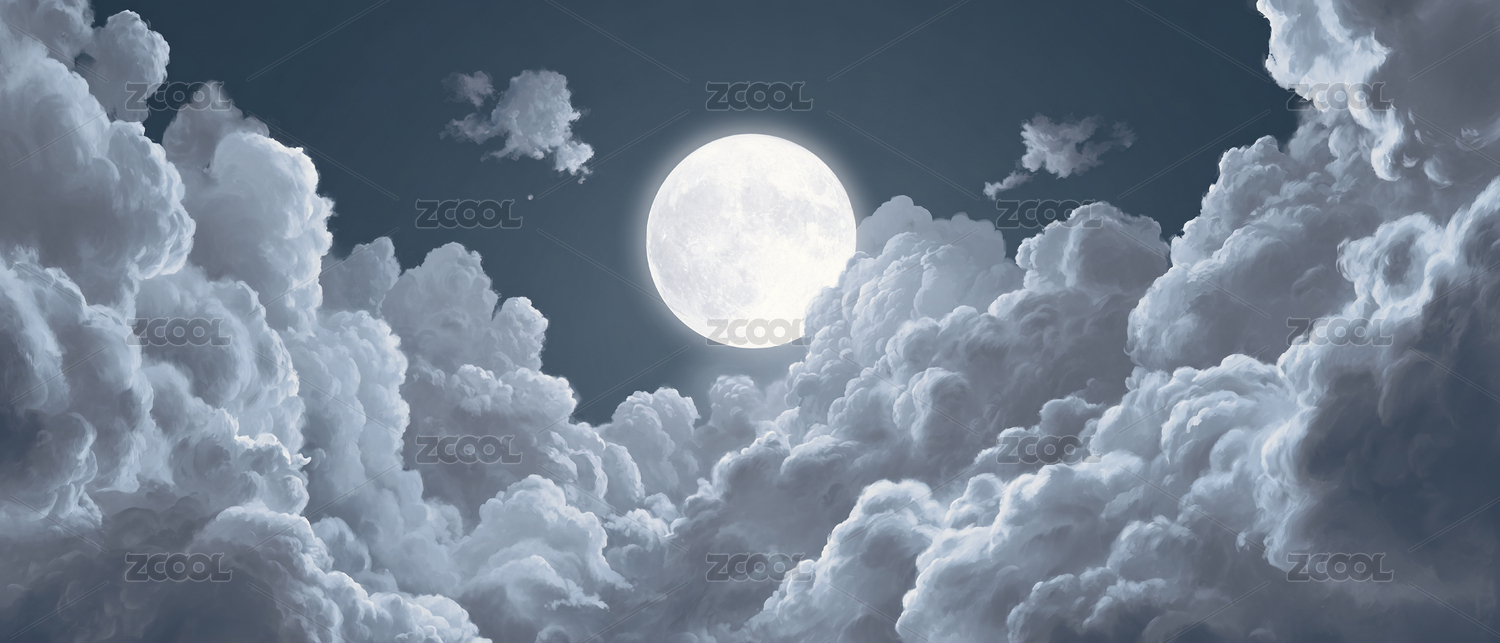 夜空中的满月与云层