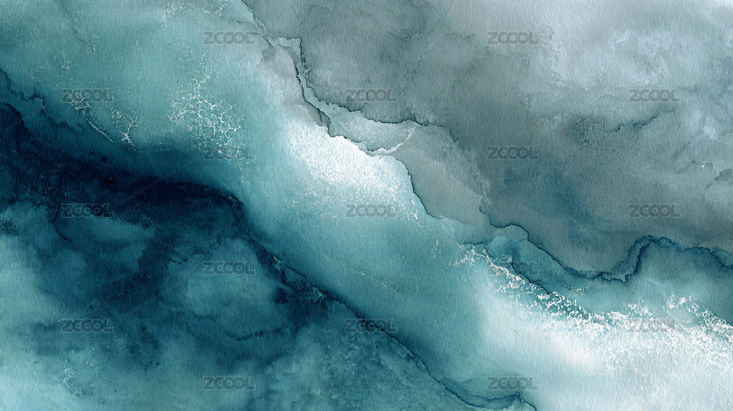 抽象水墨画以金色勾勒绿色水墨的肌理