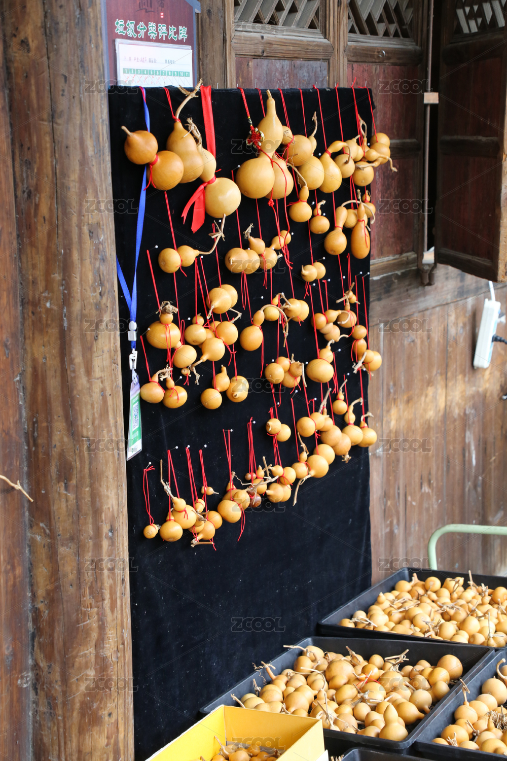 晴朗秋季四川成都崇州怀远古镇上的竹艺产品