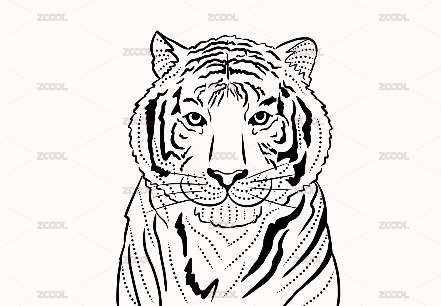 线稿版画风格老虎头部徽章装饰印花插画图案