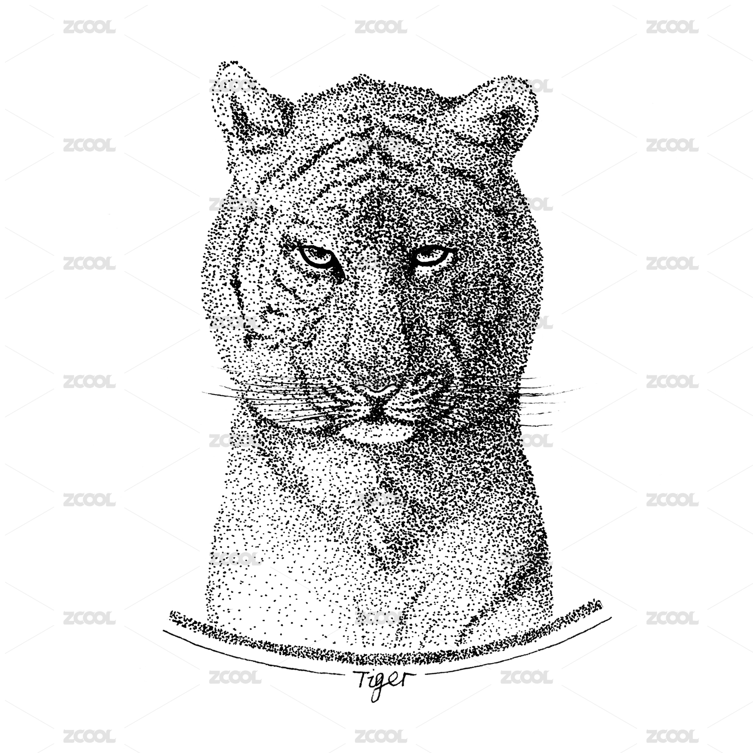 虎头,老虎,头像,Tee,服饰,插画,矢量图,艺术,素描,写实